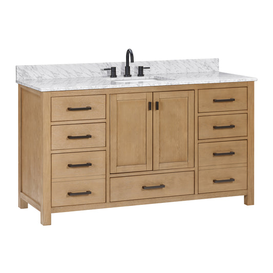 Modero 60 in. Single Sink Bathroom Vanity Mocha OakModero Collection The Modero collection blends quality craftsmanship with modern function. Featuring Shaker-style doors, each piece is built with a solid wood frame for long-lasting durability. Thoughtfully designed with soft-close doors and drawers, the Modero offers a smooth and quiet user experience. Its clean...