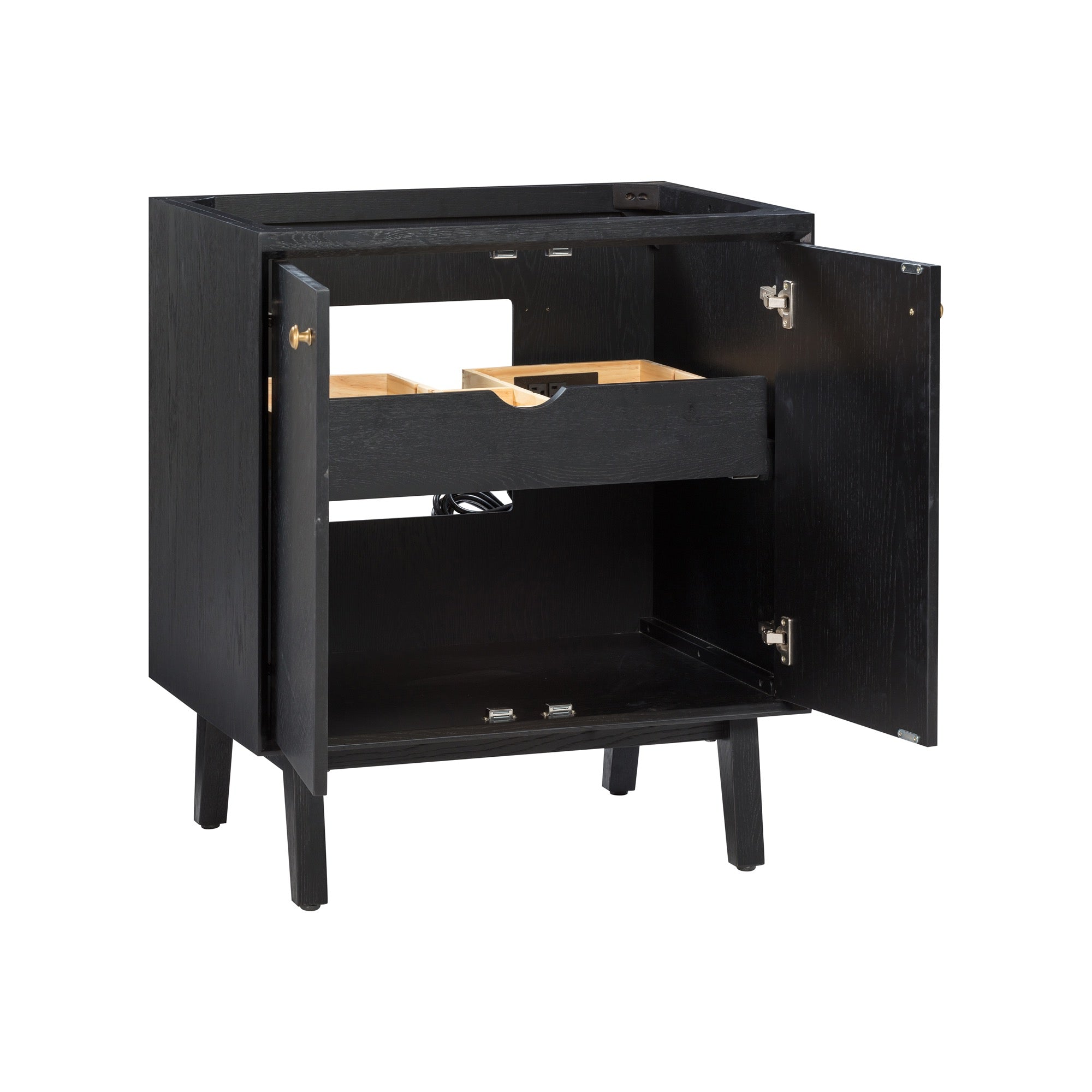 - Ample storage with 1 interior drawer with removable dividers and 2 soft-close doors