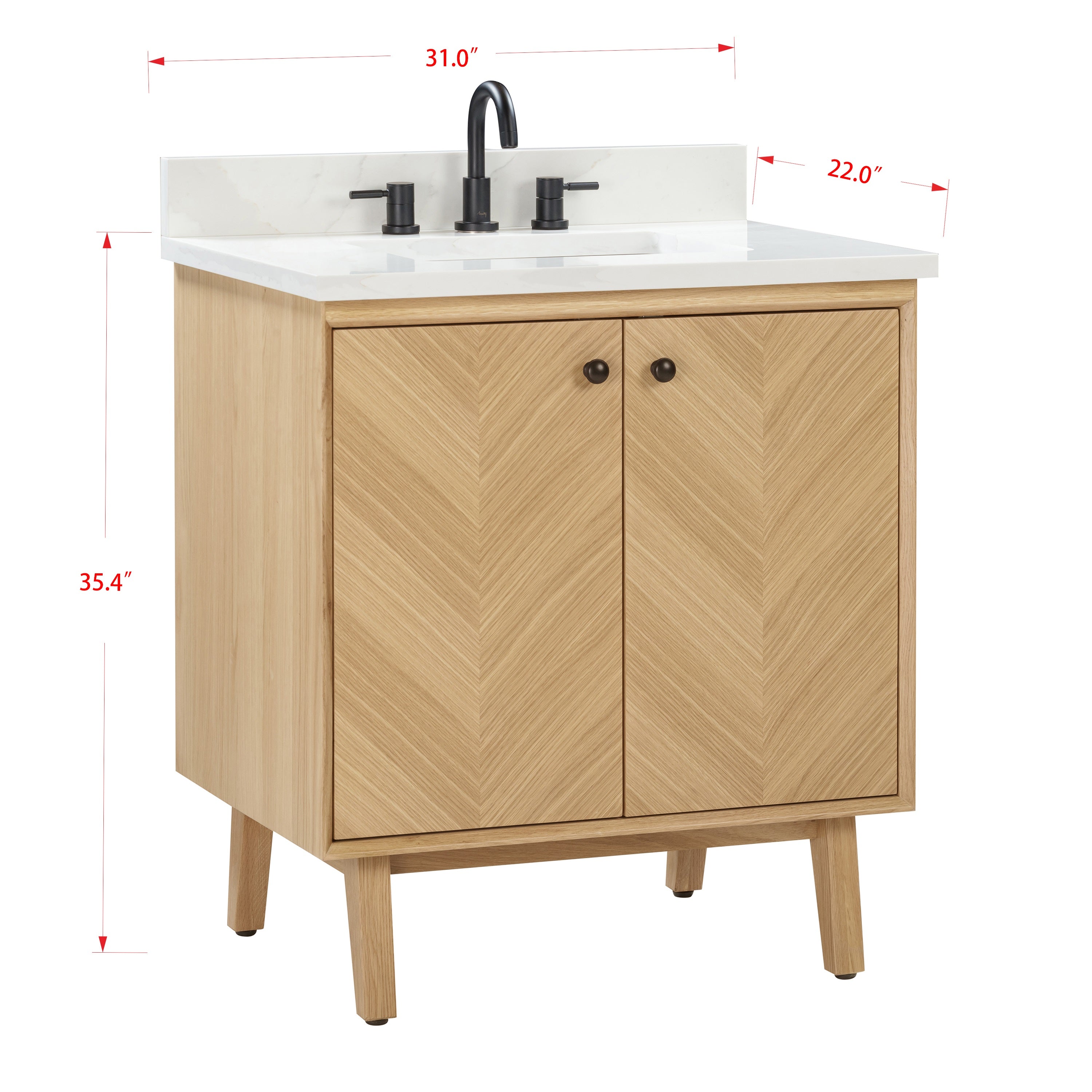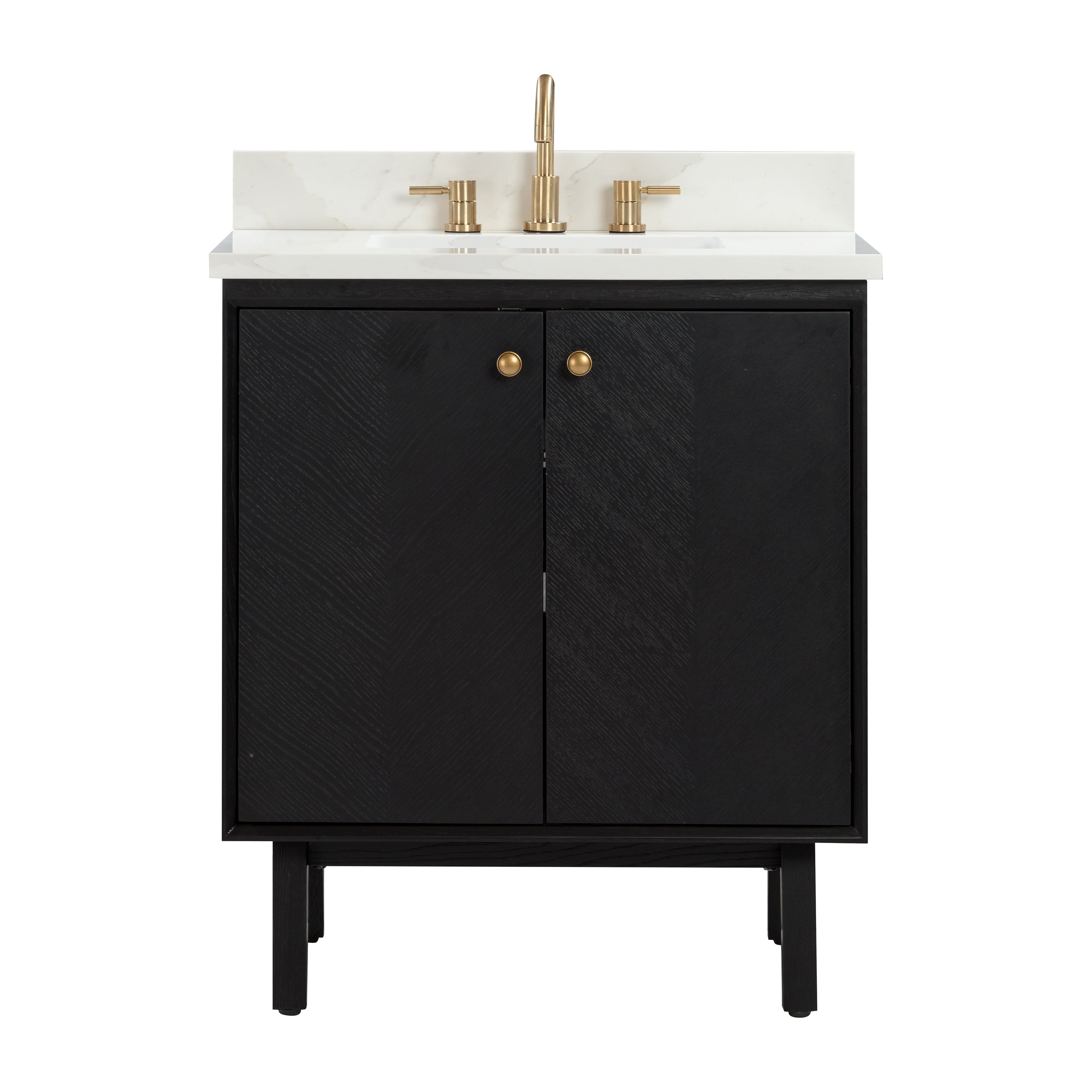 Add allure to your bathroom with the Adele 30-inch vanity by Avanity. The cabinet features a gorgeous oak finish with subtle chevron patterns gracing the flat-panel doors. The solid wood frame provides durability, and the pre-installed brass hardware complements the beauty of the real wood grain. The spacious cabinet and interior drawer provide ample storage for your toiletries and accessories, while the soft-close hinges and glides ensure smooth and quiet operation. An integrated power strip contains dual electrical and USB. Whether you want to create a rustic, farmhouse, or modern look, Adele will dazzle in any bathroom style you choose.