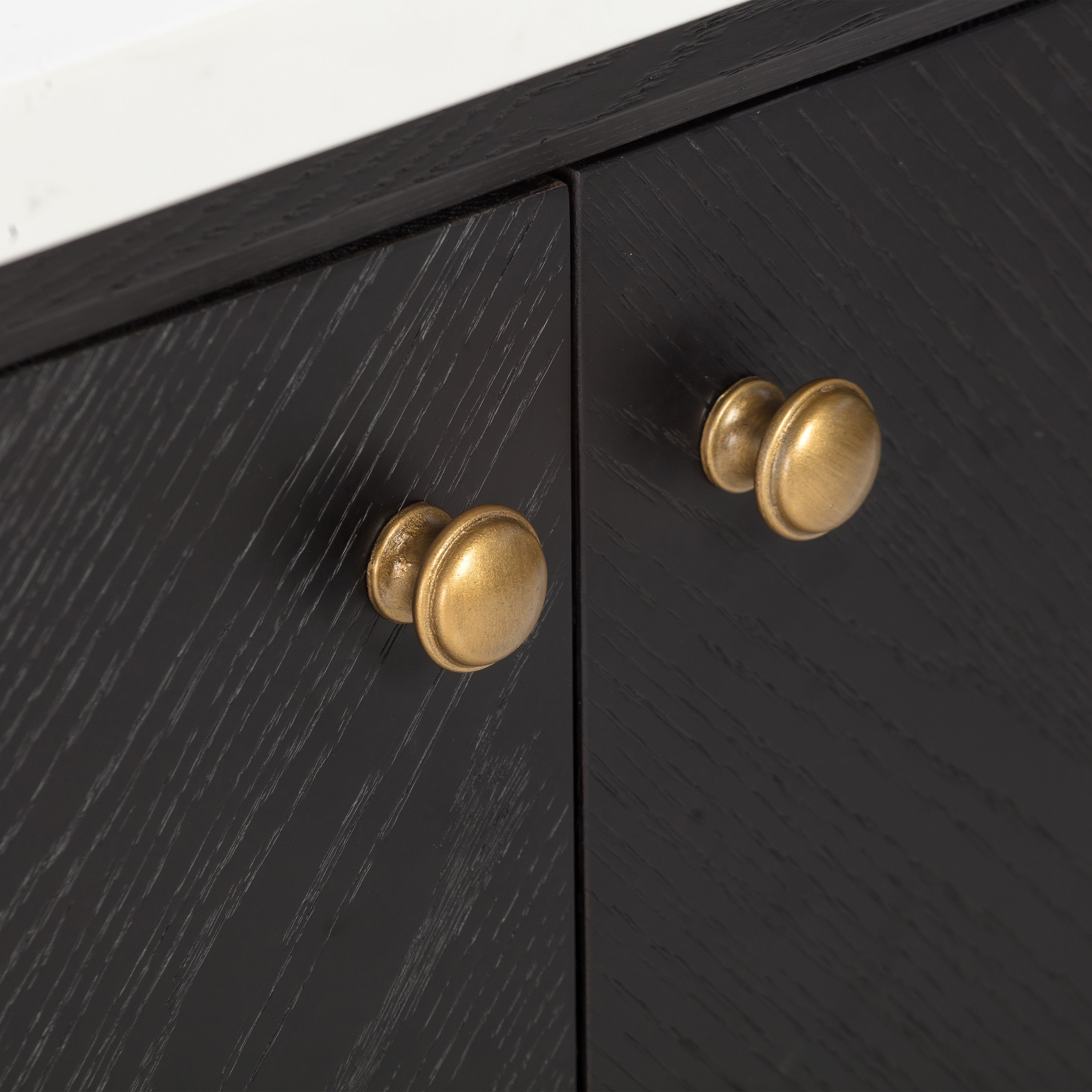 - Ample storage with 3 full-extension drawers, 2 interior drawers with removable dividers, and 4 soft-close doors
