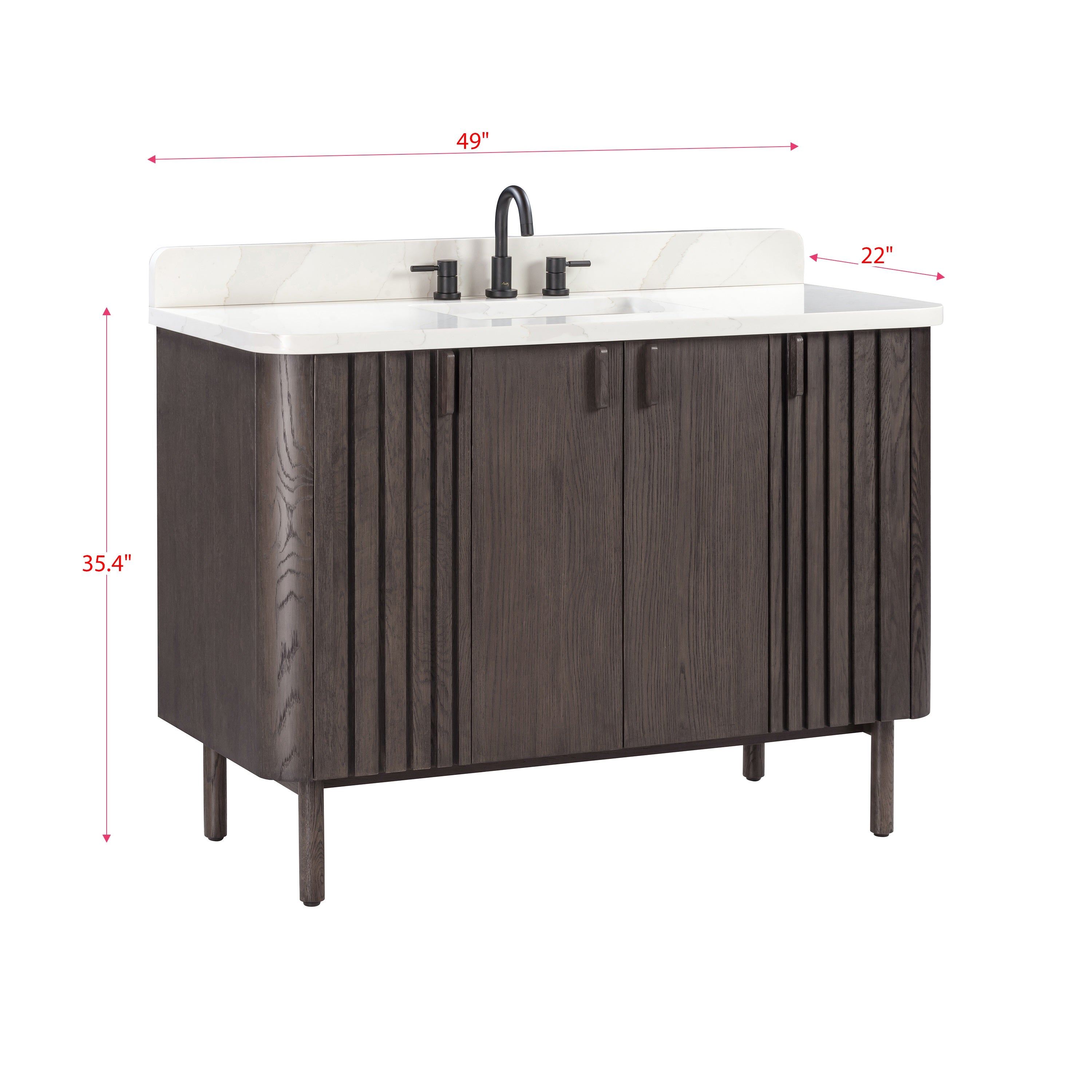 - Matching hardware blends with the wood grain for a minimalist look