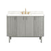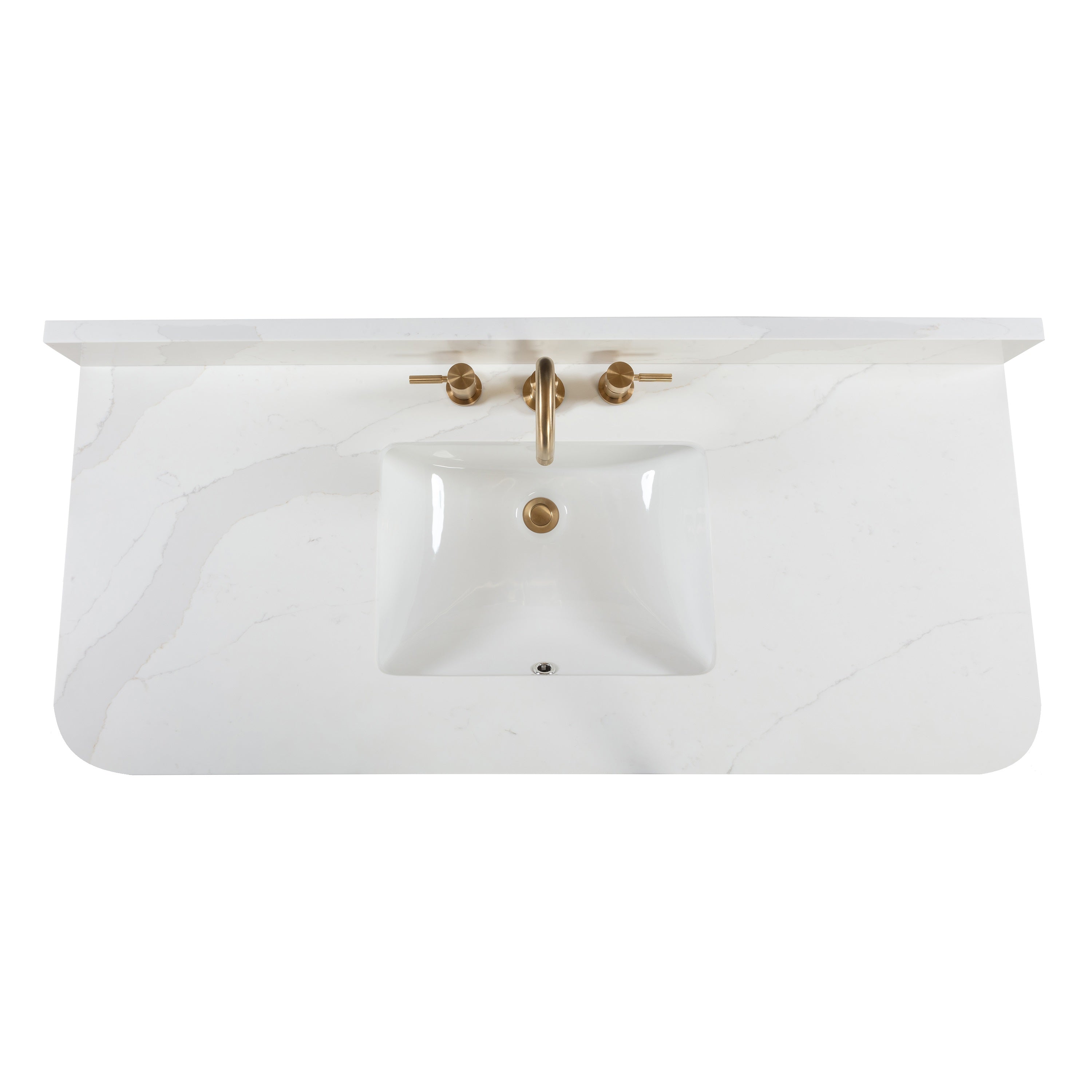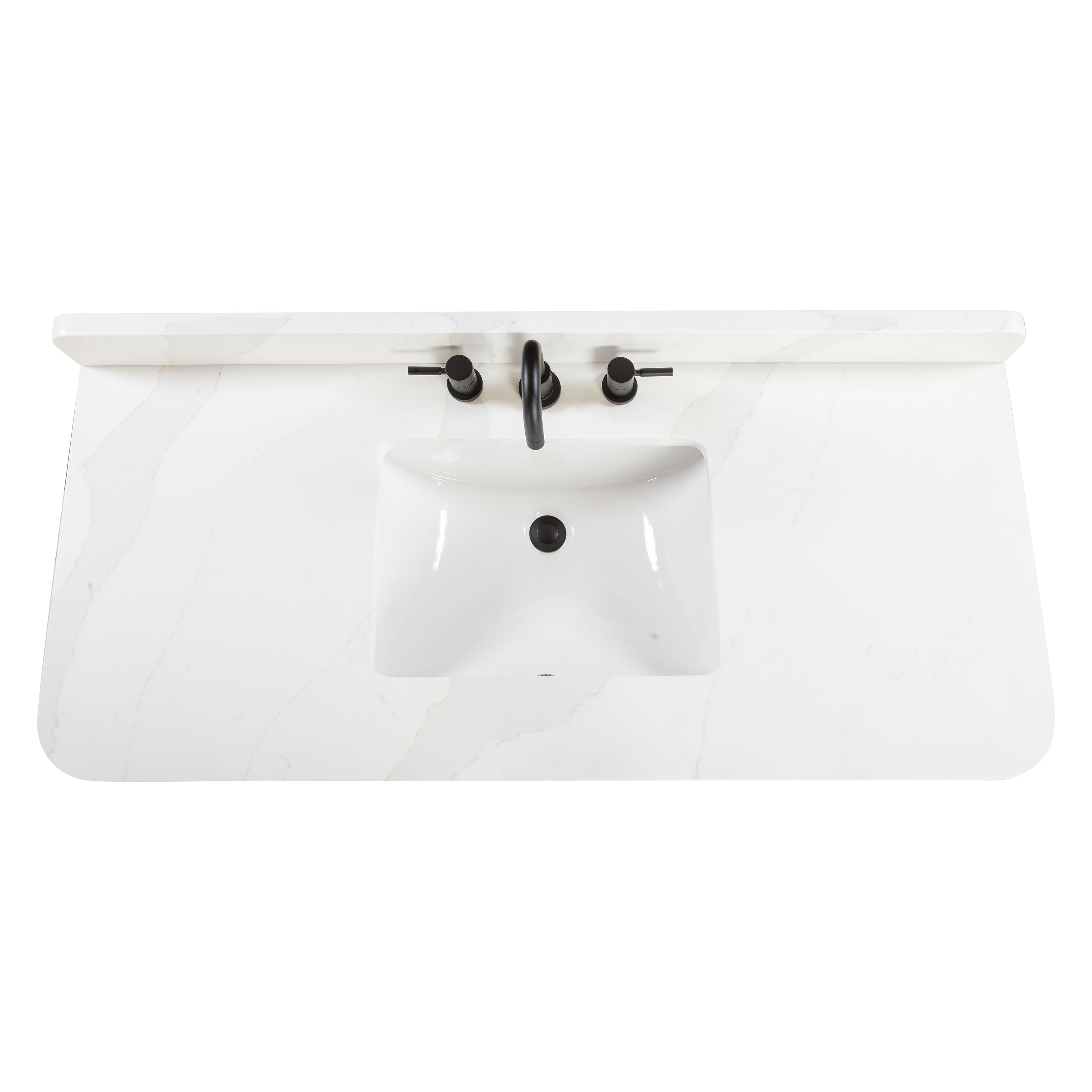 - Quartz top has a polished non-porous surface that is easy to clean and resists stains
