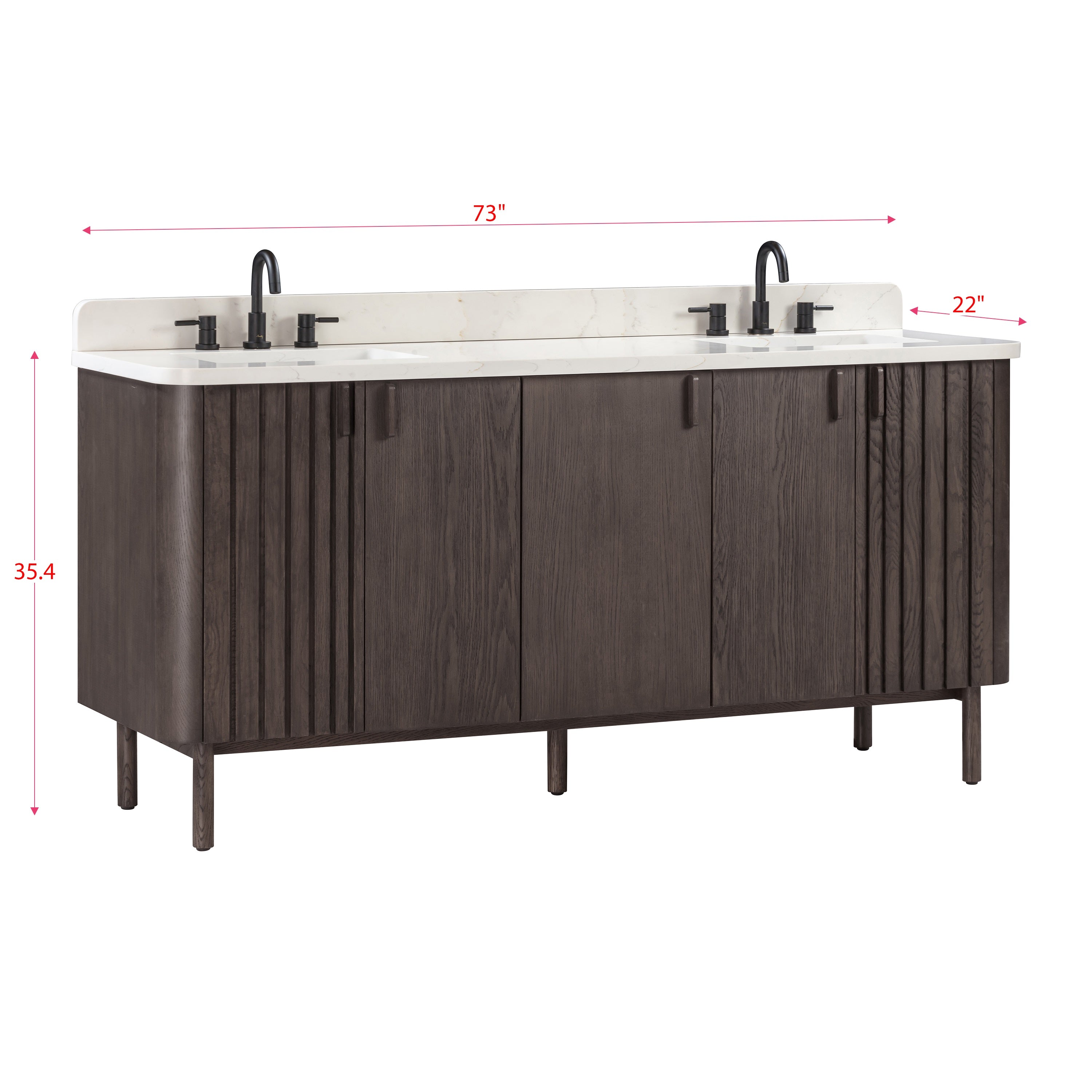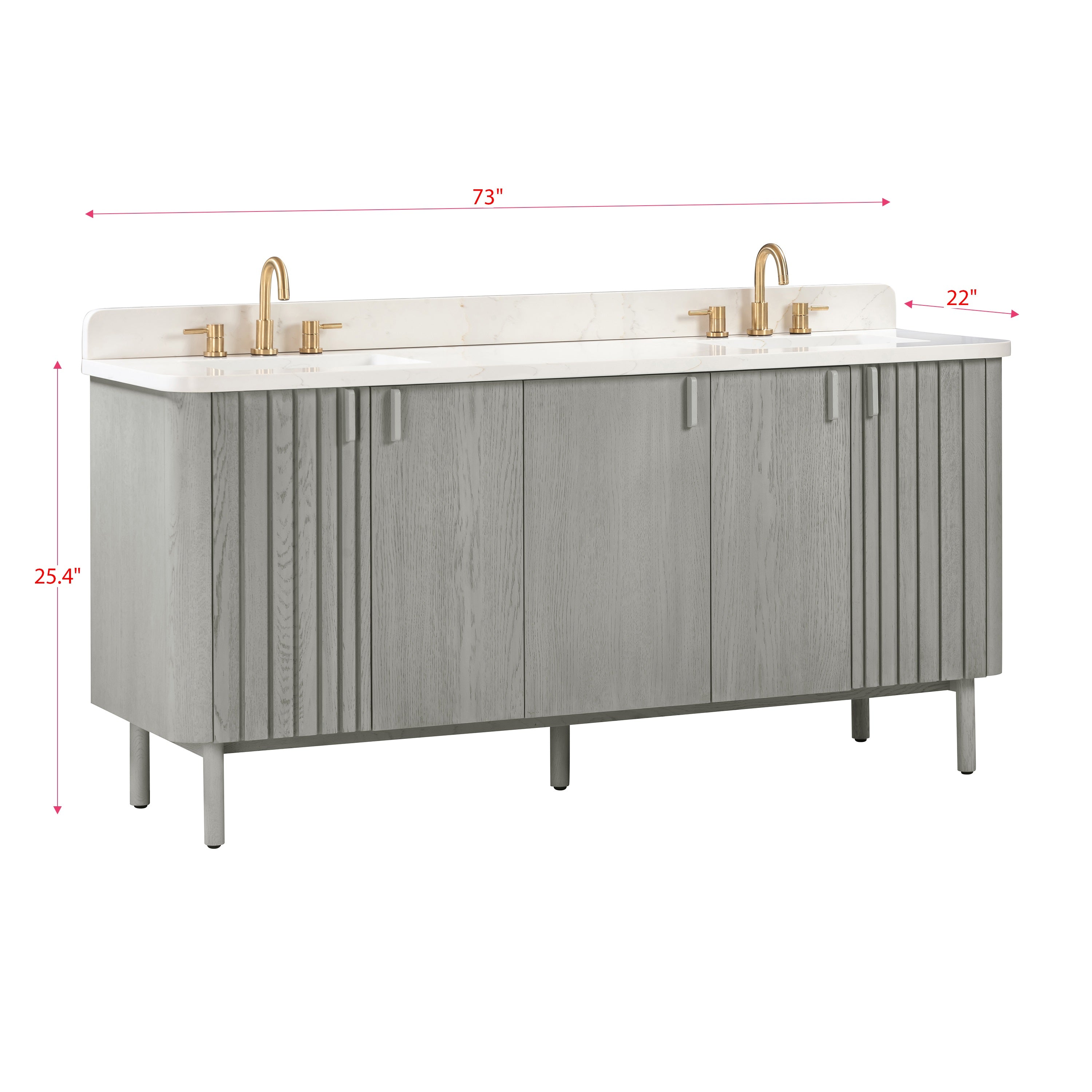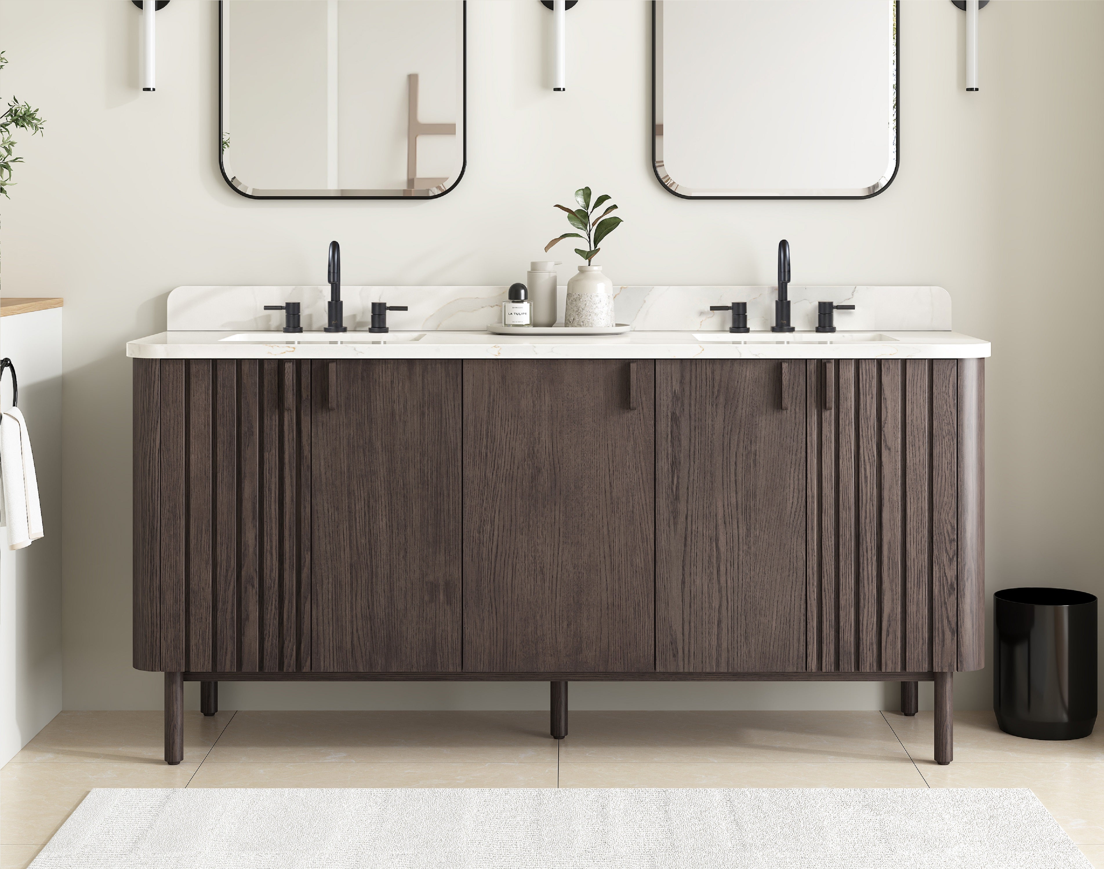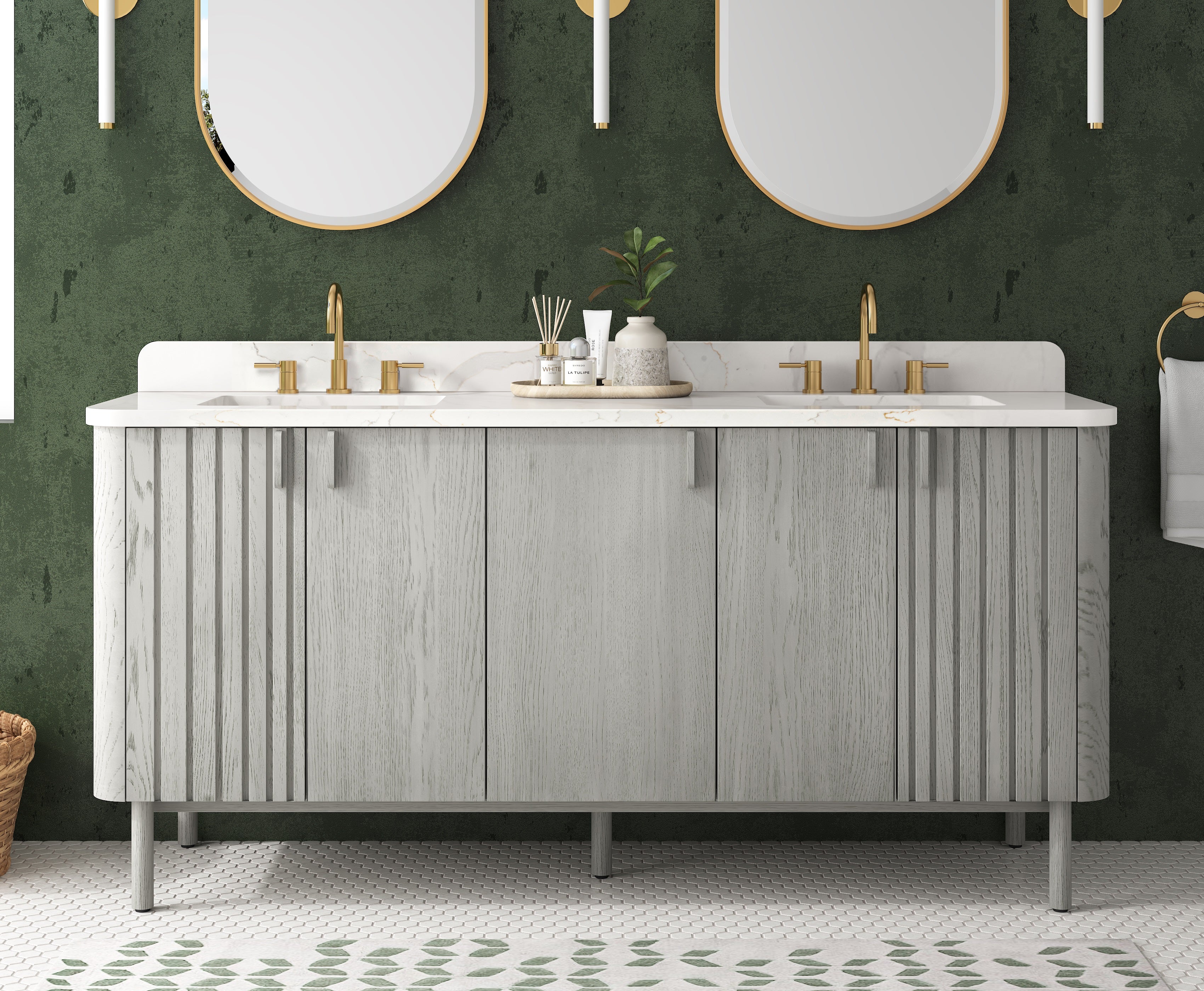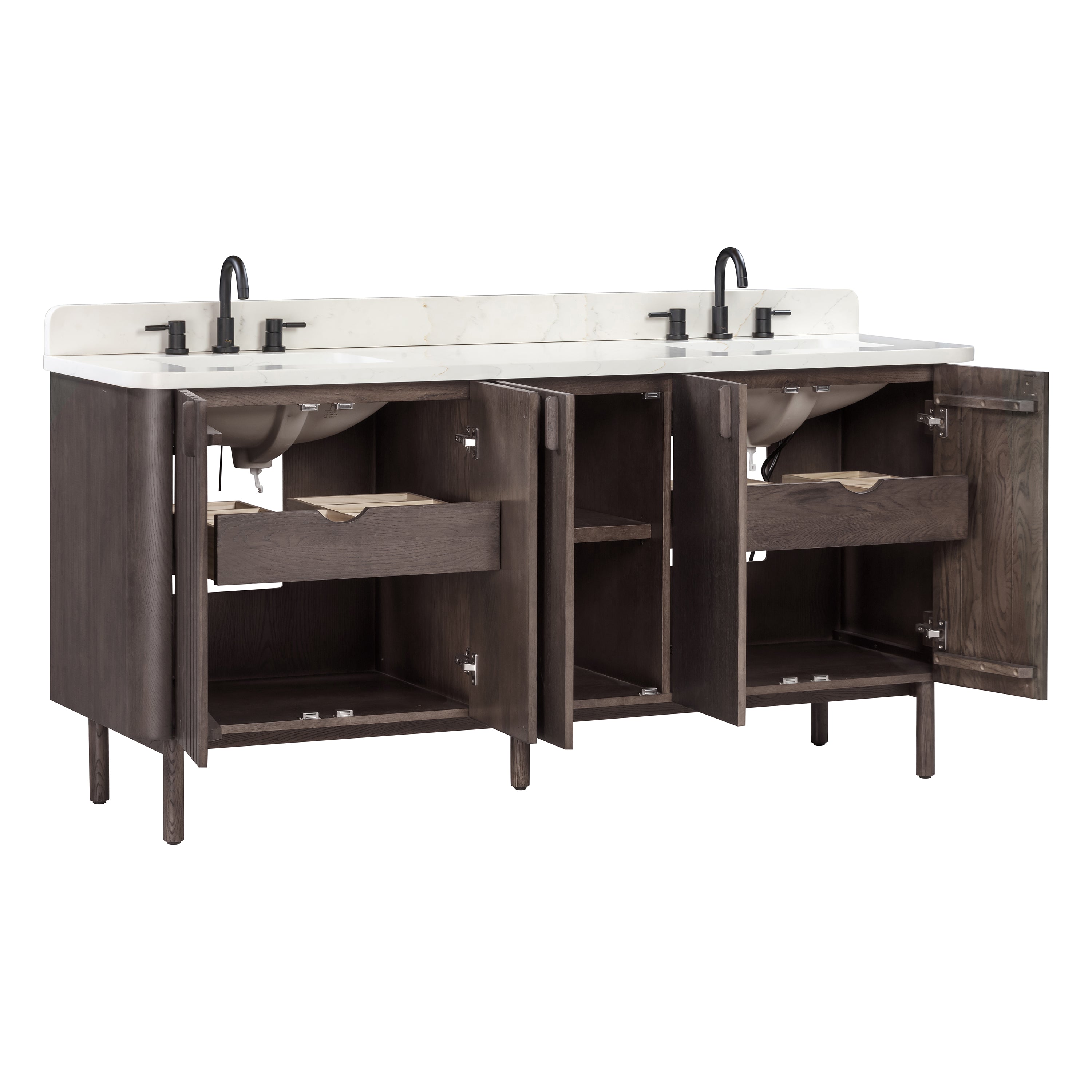 Make your bathroom beautiful with the Blakely 72-inch double vanity by Avanity. The cabinet features a gorgeous oak finish with both flat panel and beaded doors to striking effect. The solid wood frame provides durability, and the oak hardware blends with the wood grain, creating a minimalist look. The spacious cabinet, three pull out drawers, and two interior drawers provide ample storage for your toiletries and accessories, while the soft-close hinges and glides ensure smooth and quiet operation. An integrated power strip contains dual electrical and USB. Whether you want to create a rustic, farmhouse, or modern look, Blakely will dazzle in any bathroom style you choose.
