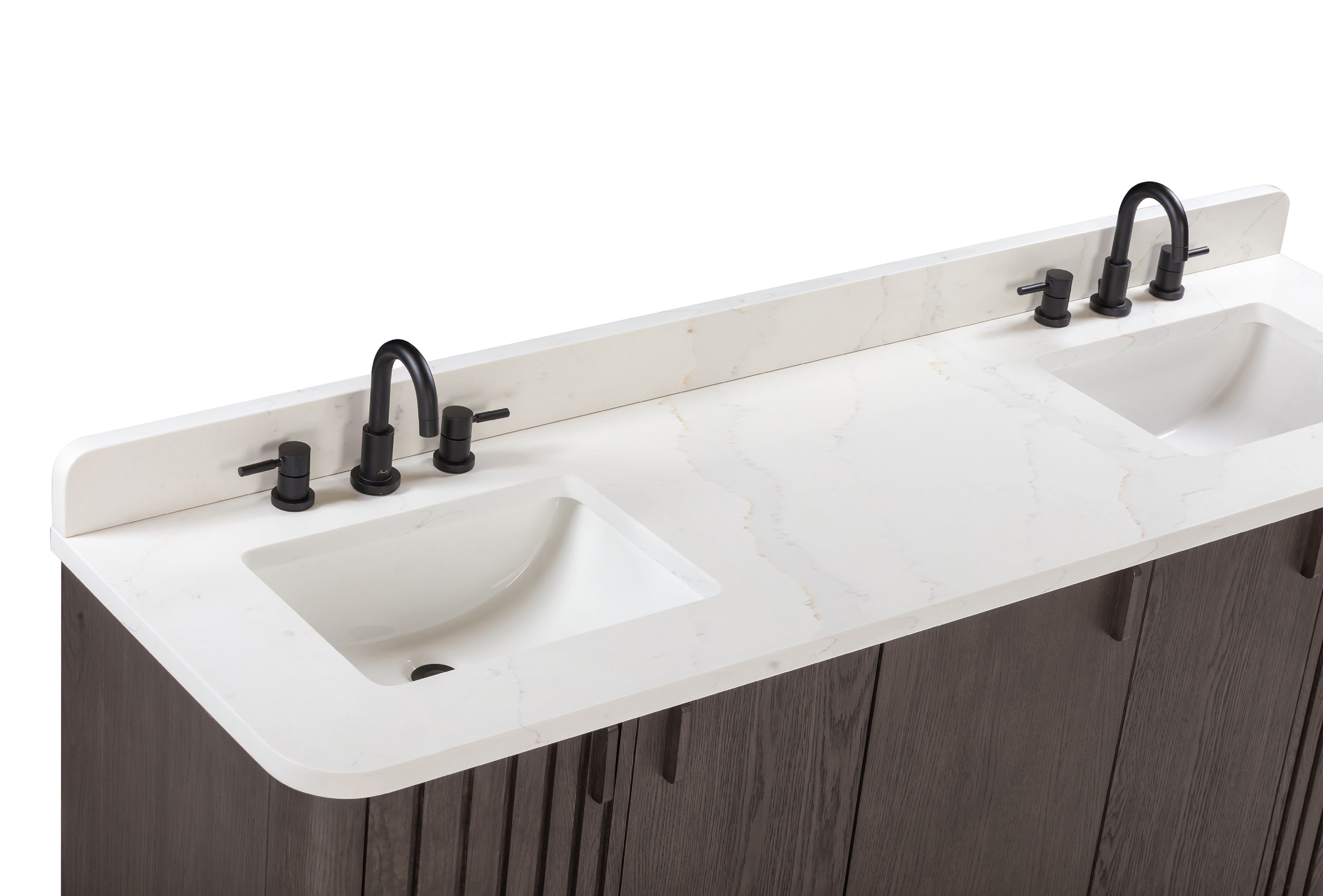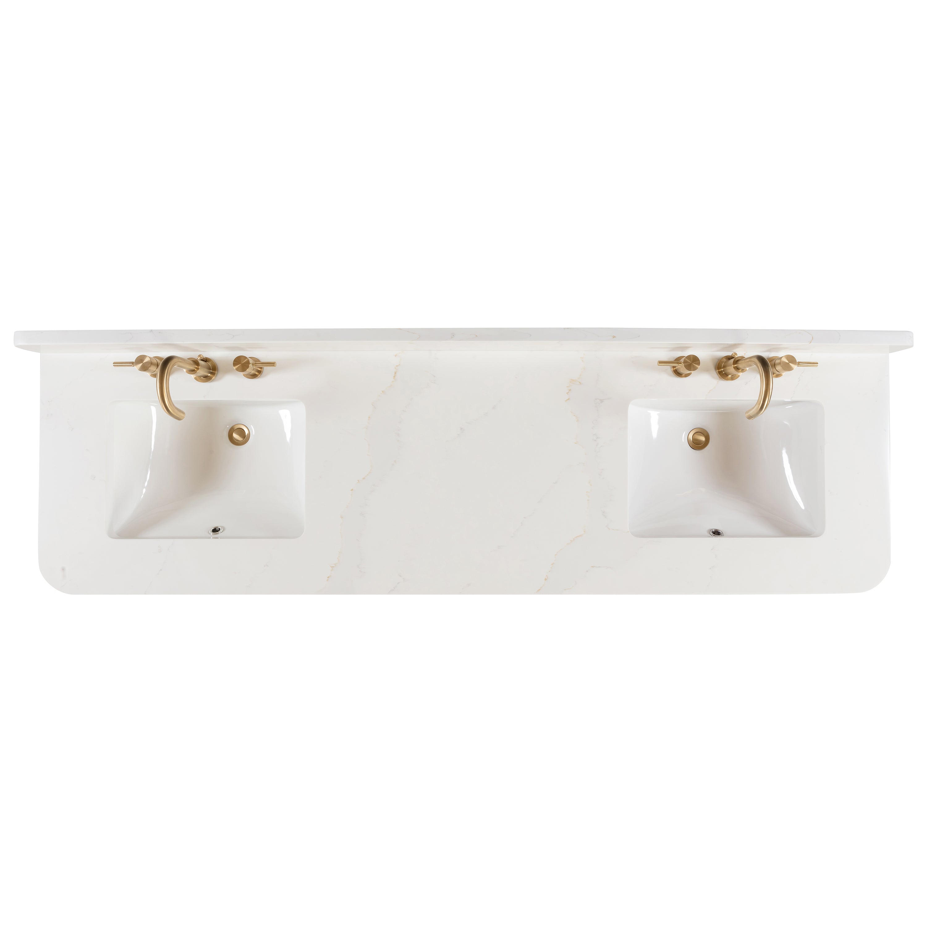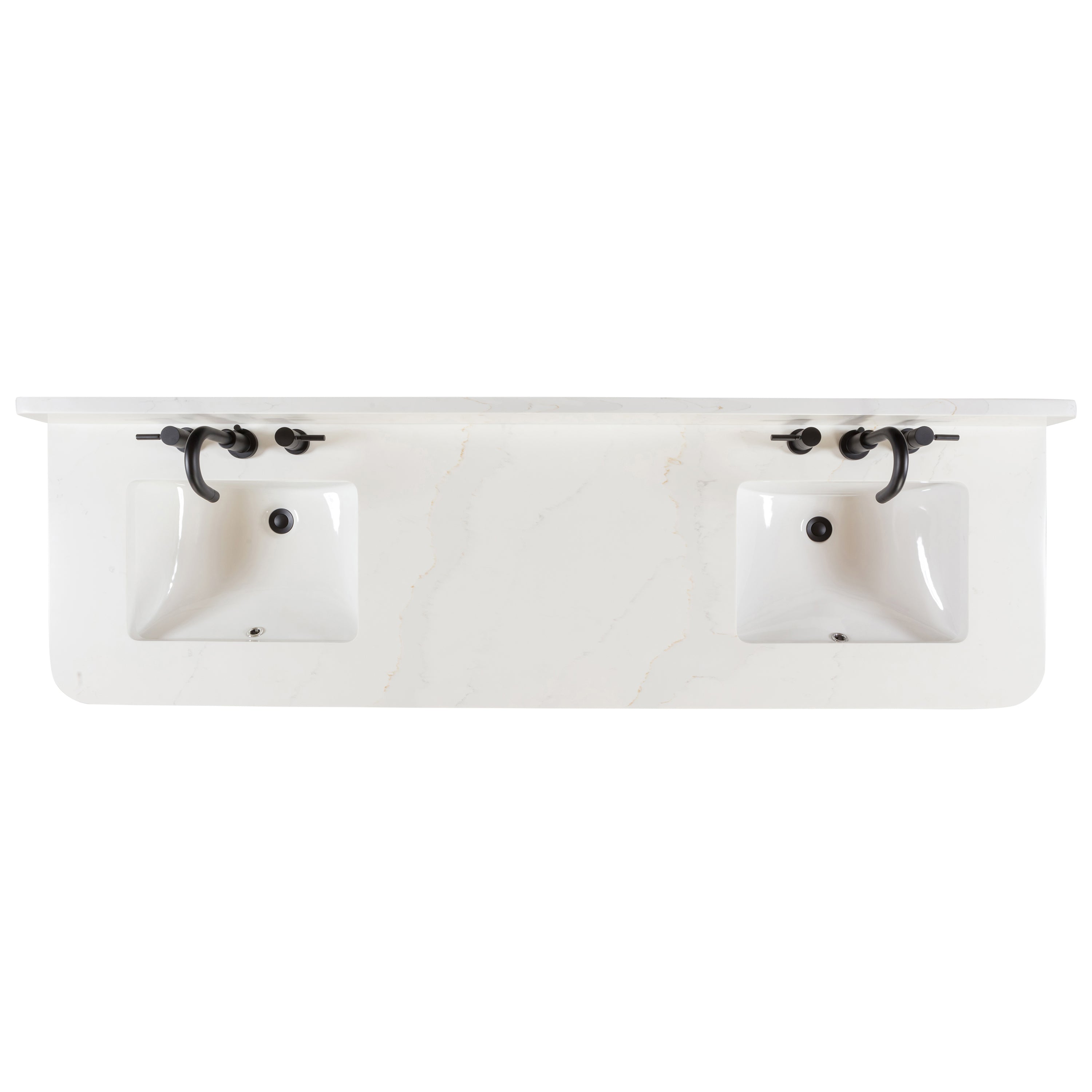- Quartz top has a polished non-porous surface that is easy to clean and resists stains