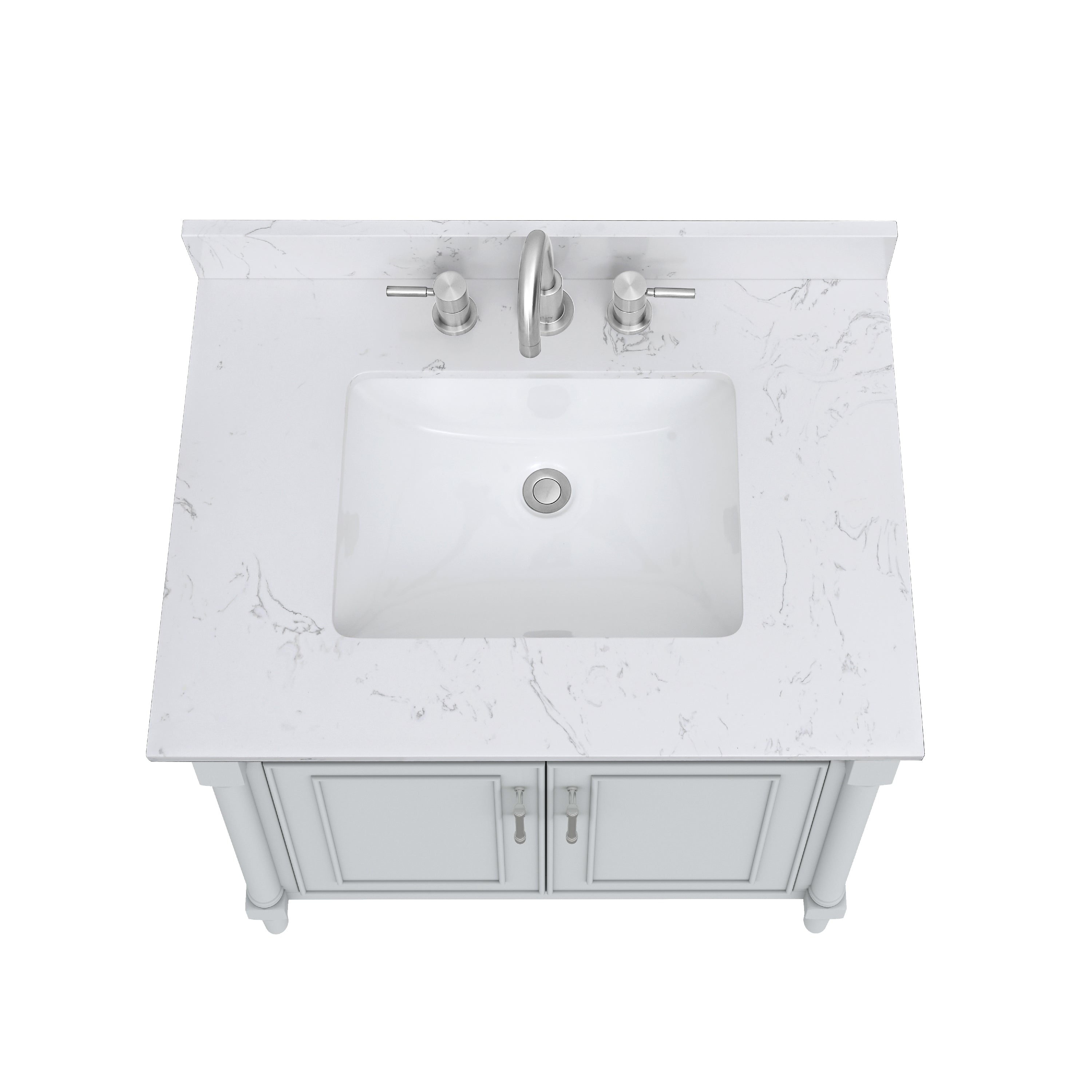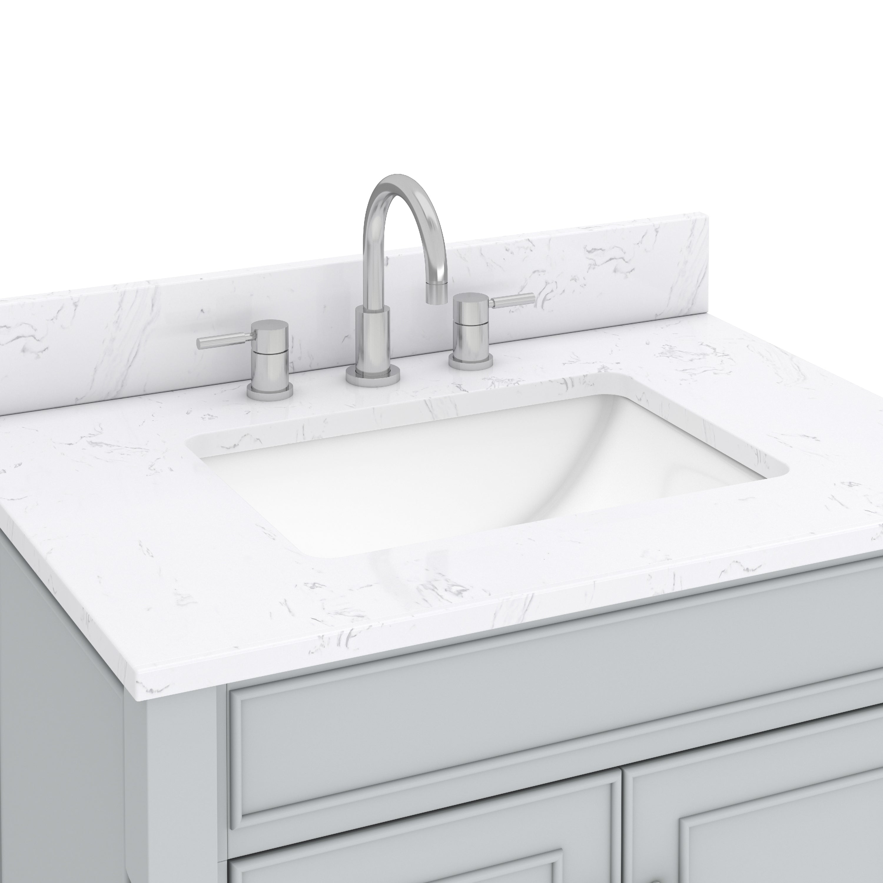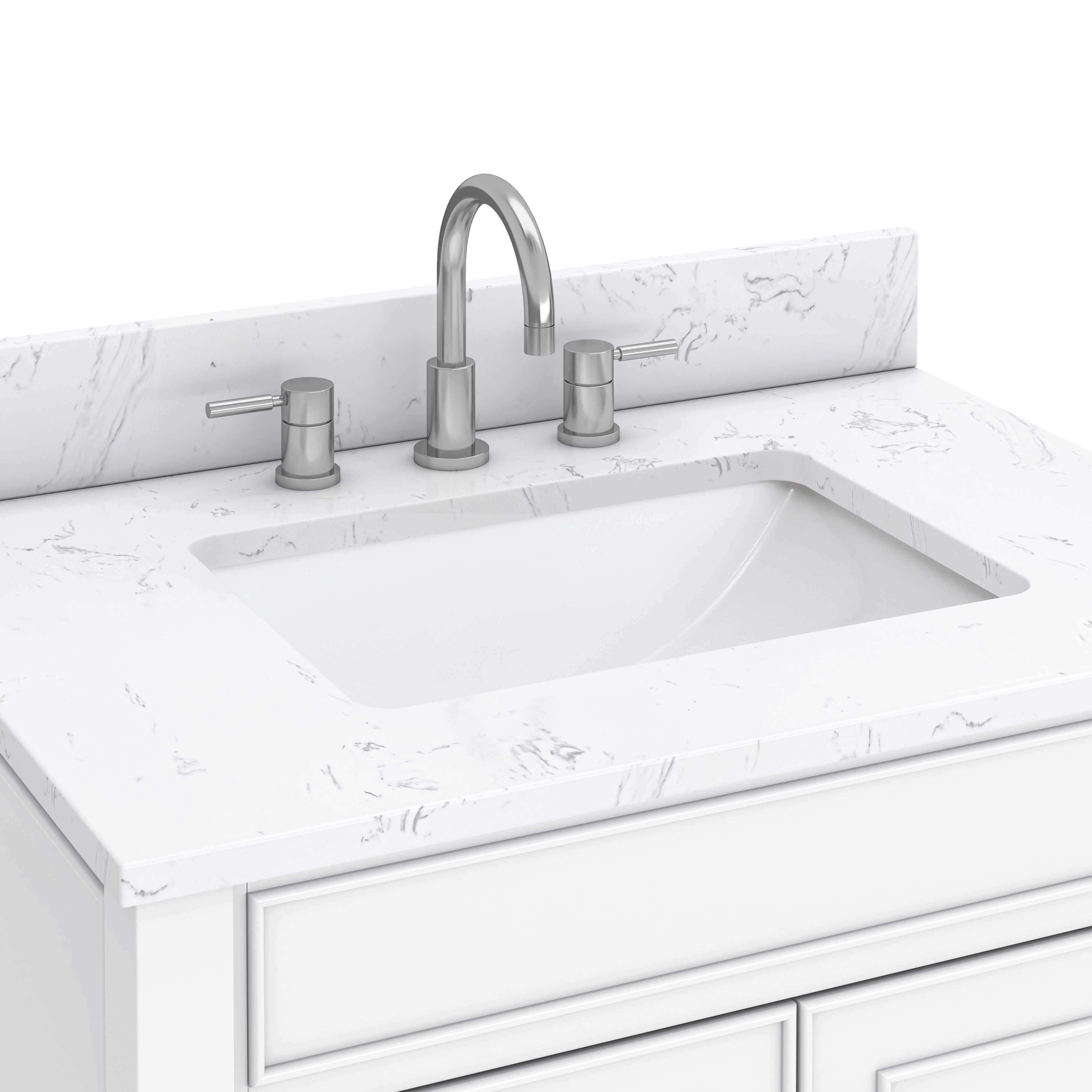 • Top is pre-drilled for 8-in widespread faucets (faucet not included)