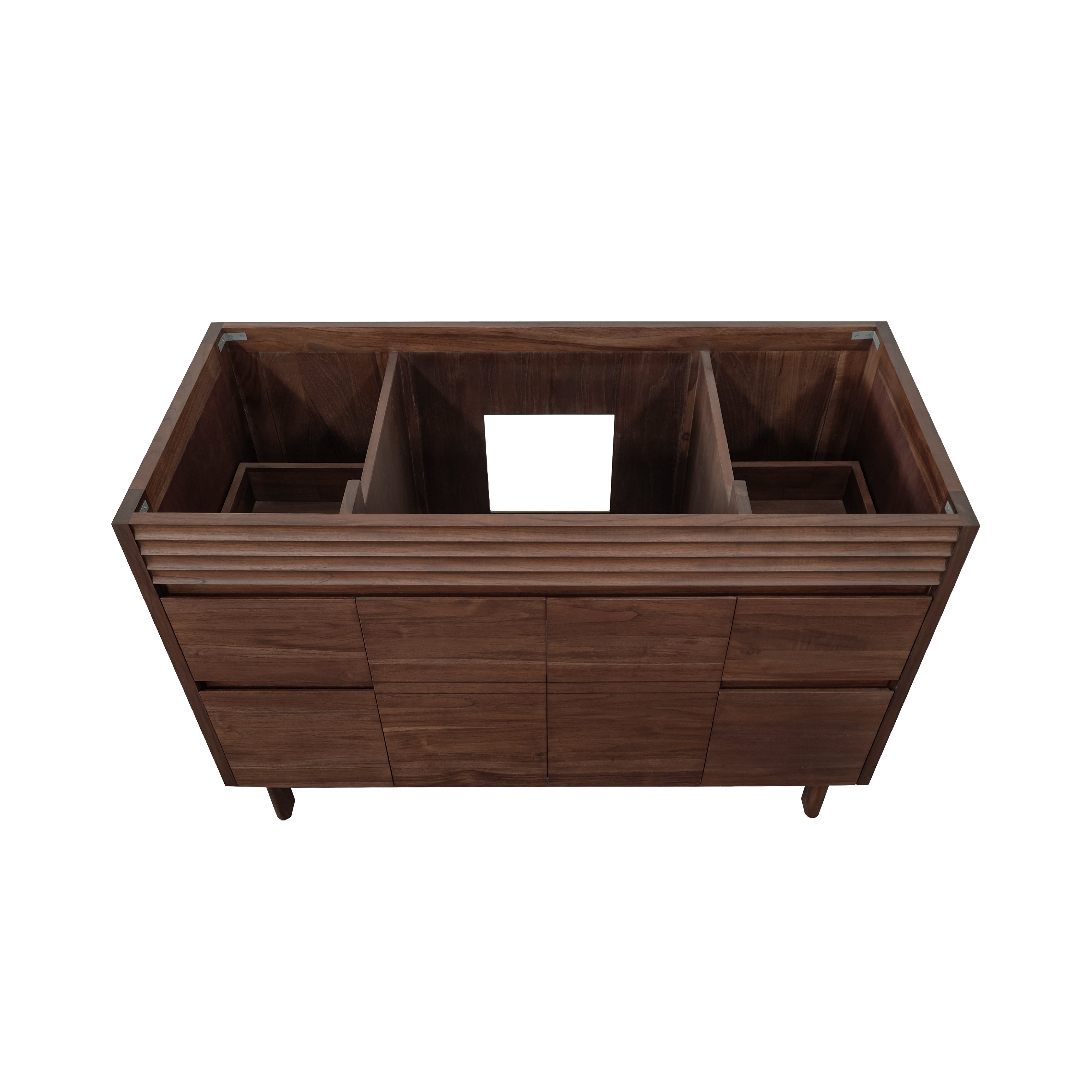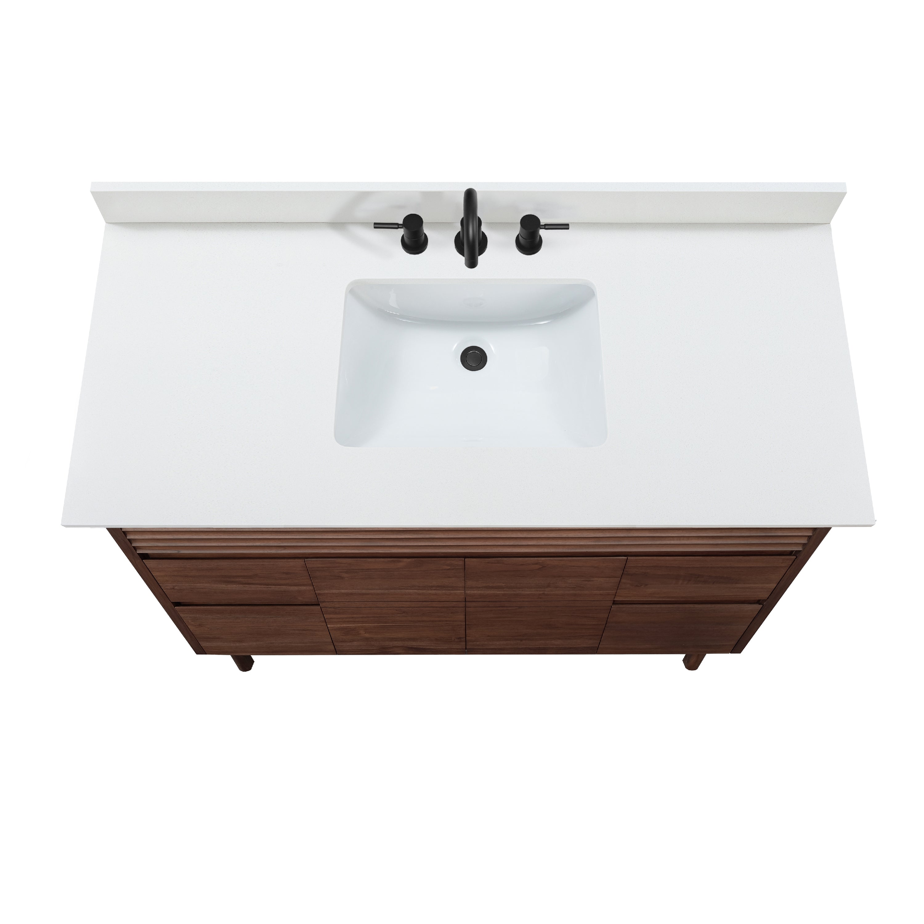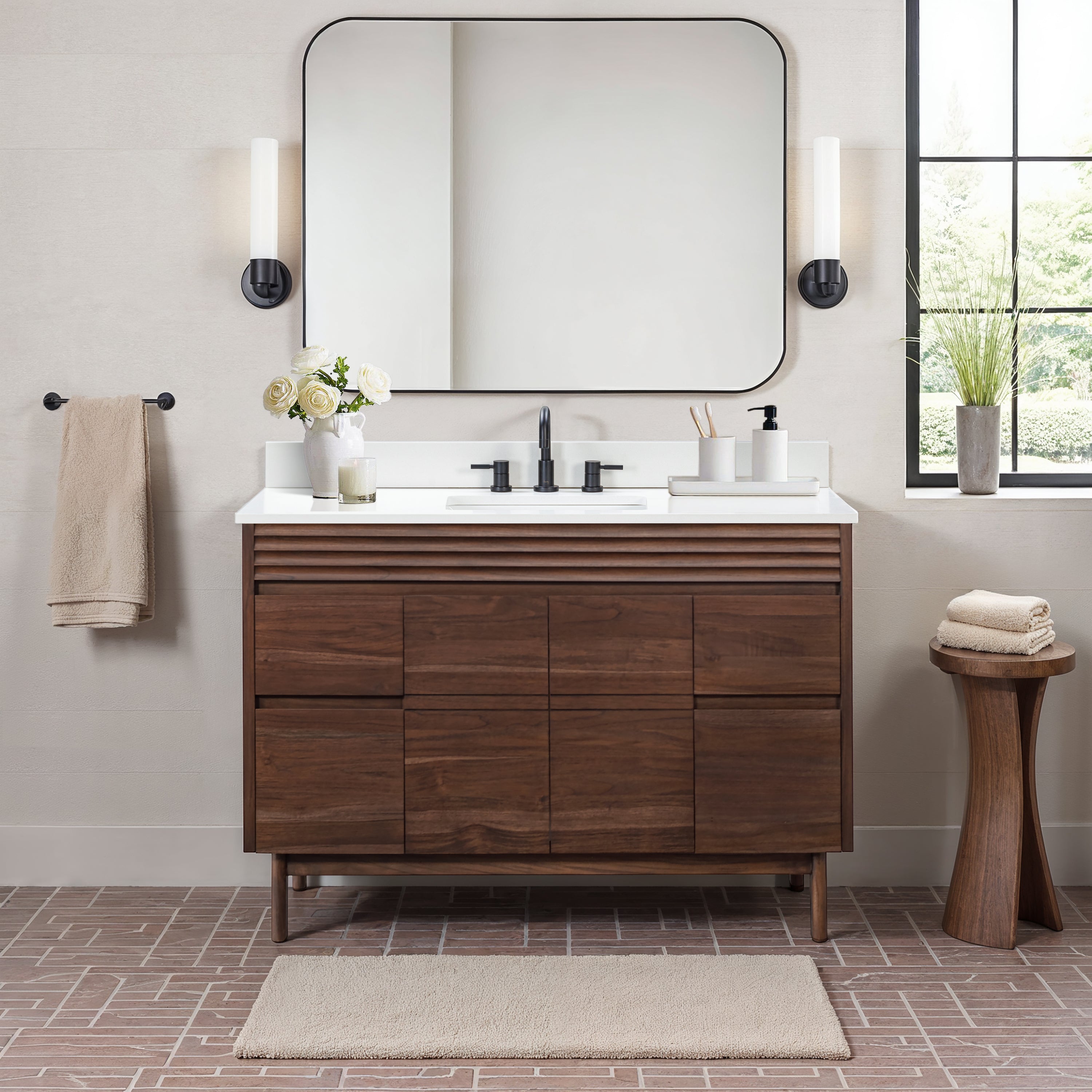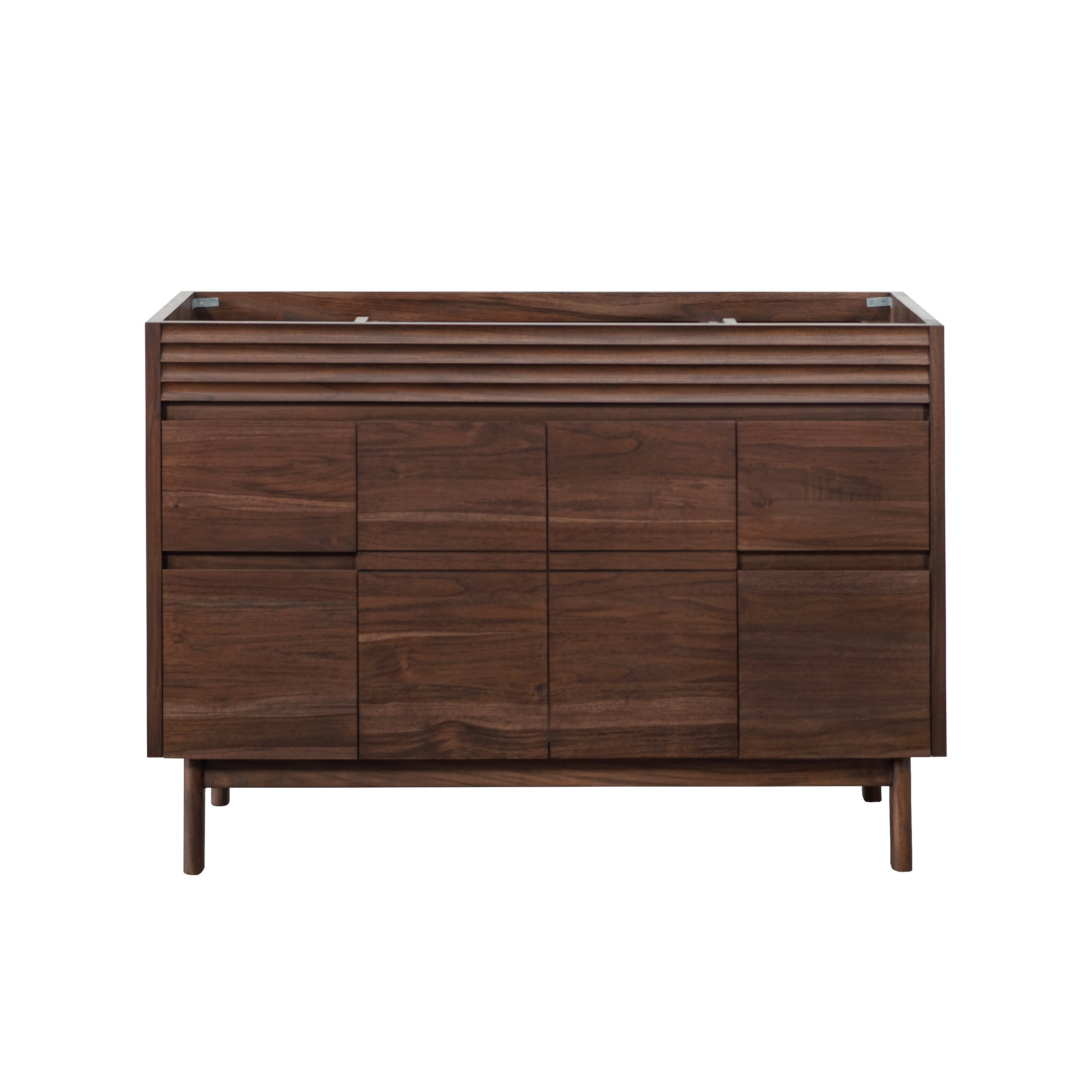 The Carina Collection, finished in a rich coffee teak, highlights the natural beauty and durability of solid teak wood. Known for its moisture resistance and striking grain, teak ensures long-lasting performance in any bathroom. A solid wood frame enhances stability, while abundant storage keeps essentials organized. The minimalist flat-panel design is elevated by subtle horizontal detailing in the apron, adding a touch of texture and contrast. Designed for both function and style, this collection blends warmth and style, making it an elegant and practical choice for a refined bathroom space.