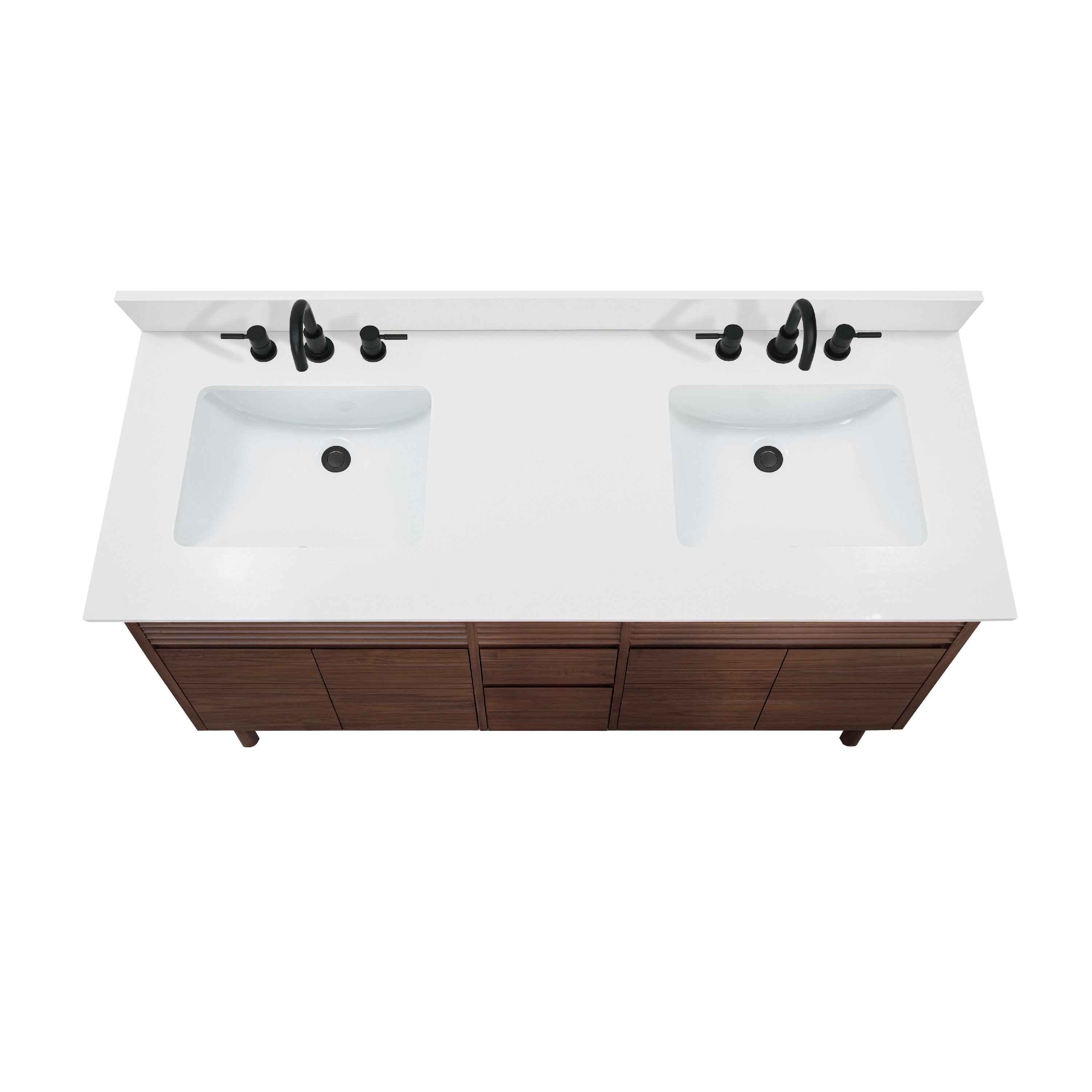The Carina Collection, finished in a rich coffee teak, highlights the natural beauty and durability of solid teak wood. Known for its moisture resistance and striking grain, teak ensures long-lasting performance in any bathroom. A solid wood frame enhances stability, while abundant storage keeps essentials organized. The minimalist flat-panel design is elevated by subtle horizontal detailing in the apron, adding a touch of texture and contrast. Designed for both function and style, this collection blends warmth and style, making it an elegant and practical choice for a refined bathroom space.