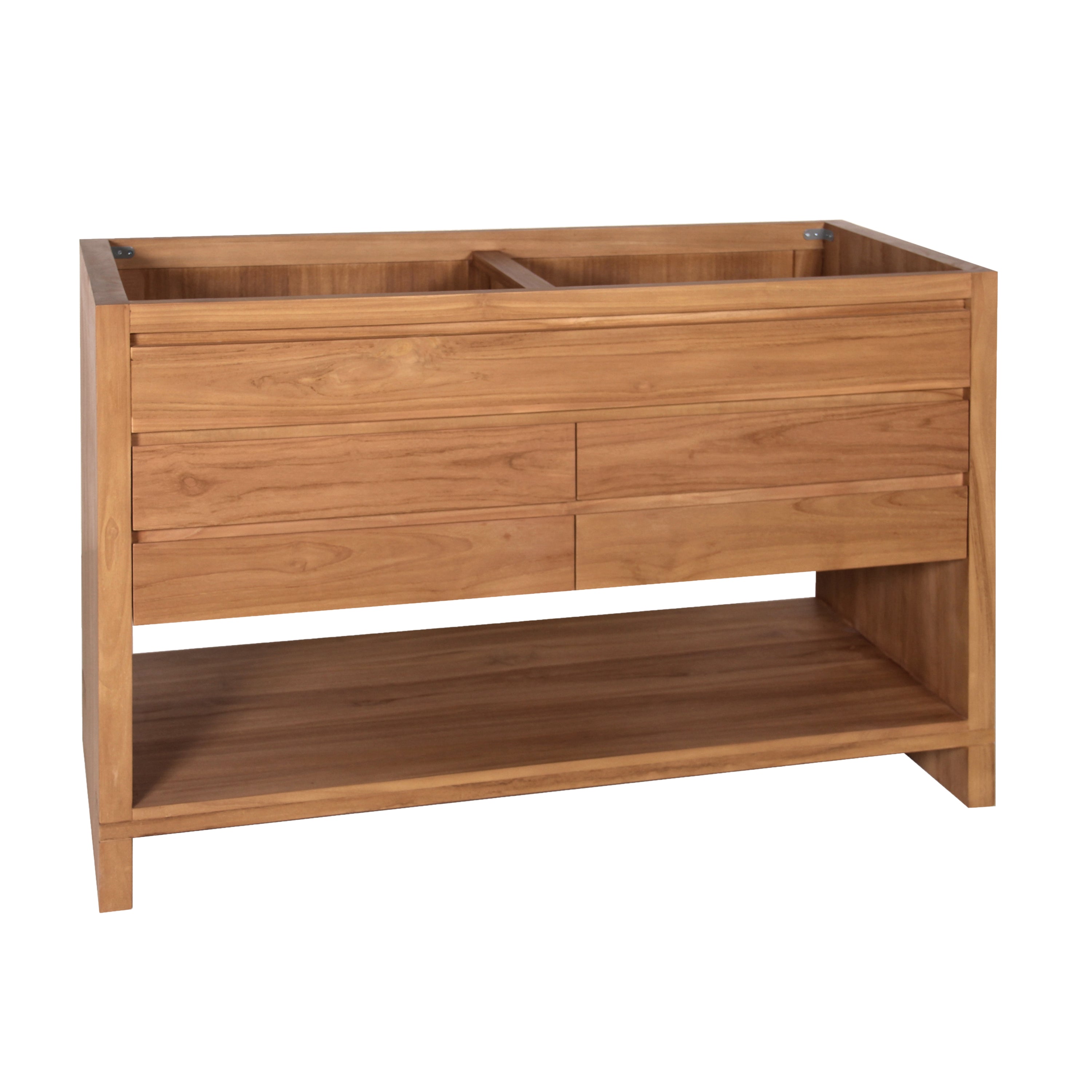 The Kai Collection from Avanity stands out for its pure lines and refined restraint. No fancy hardware, superfluous detailing, or wasted space. The 48-inch Kai vanity cabinet is constructed from stunning and strong natural teak. The silhouette is simple and storage is ample, with soft-closing drawers and an open shelf. Feel the subtle texture of the wood and feel confident that your Kai vanity will please the eye and do the job as the centerpiece of your bathroom. Pair it with the matching mirror to complete the look.