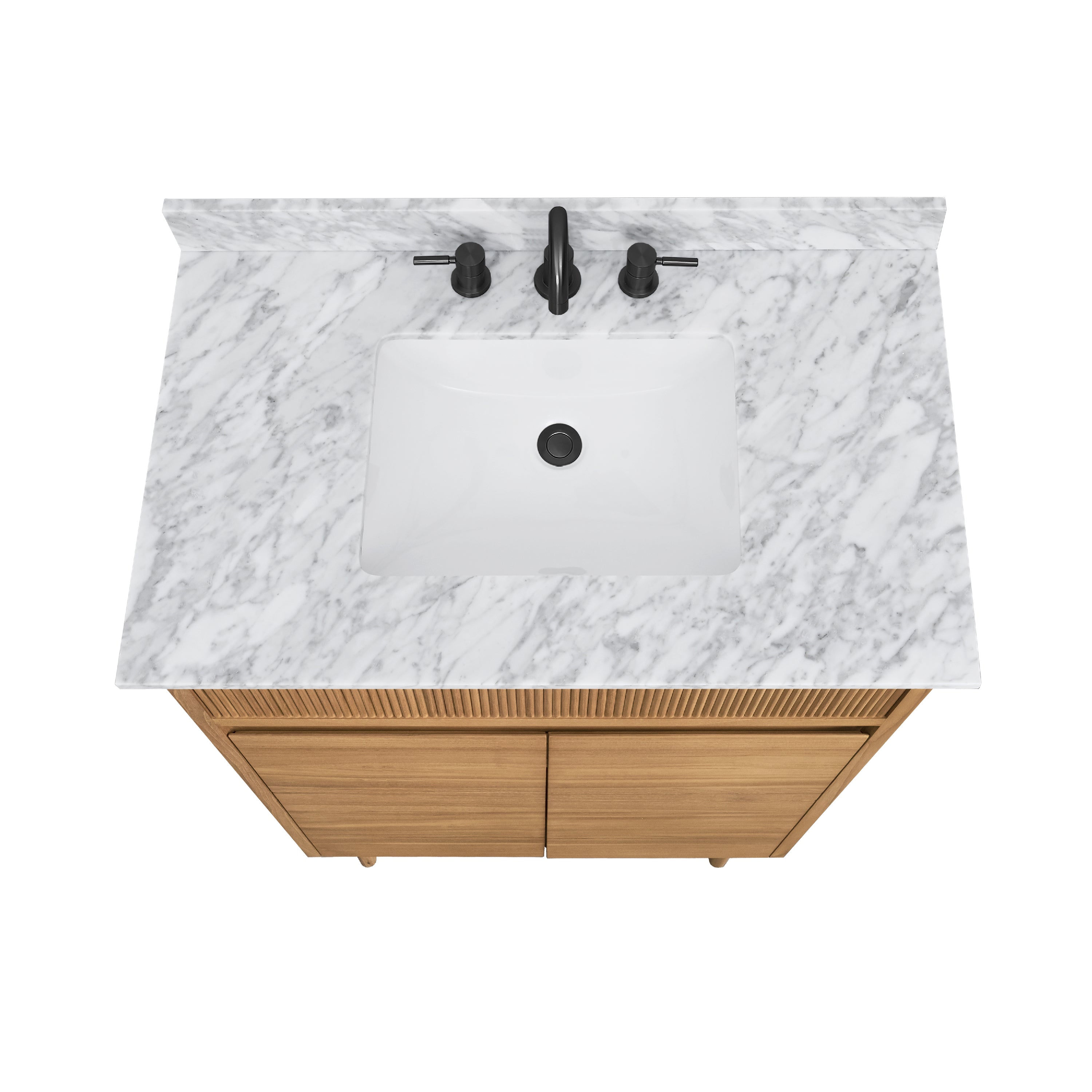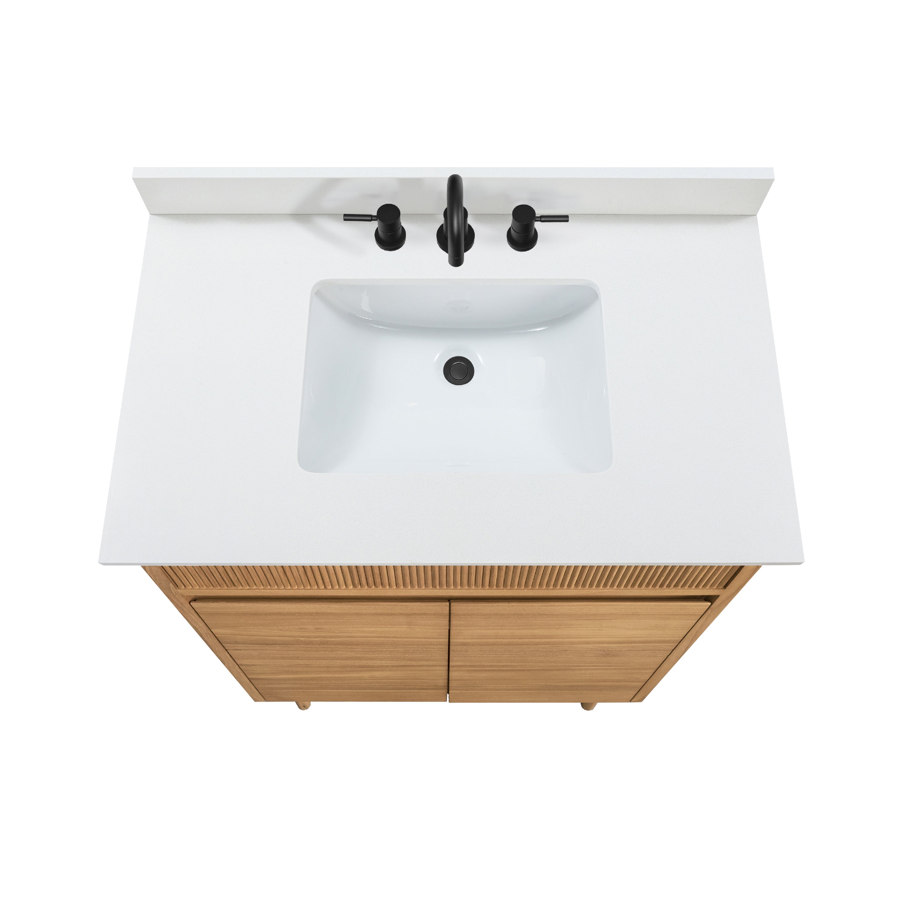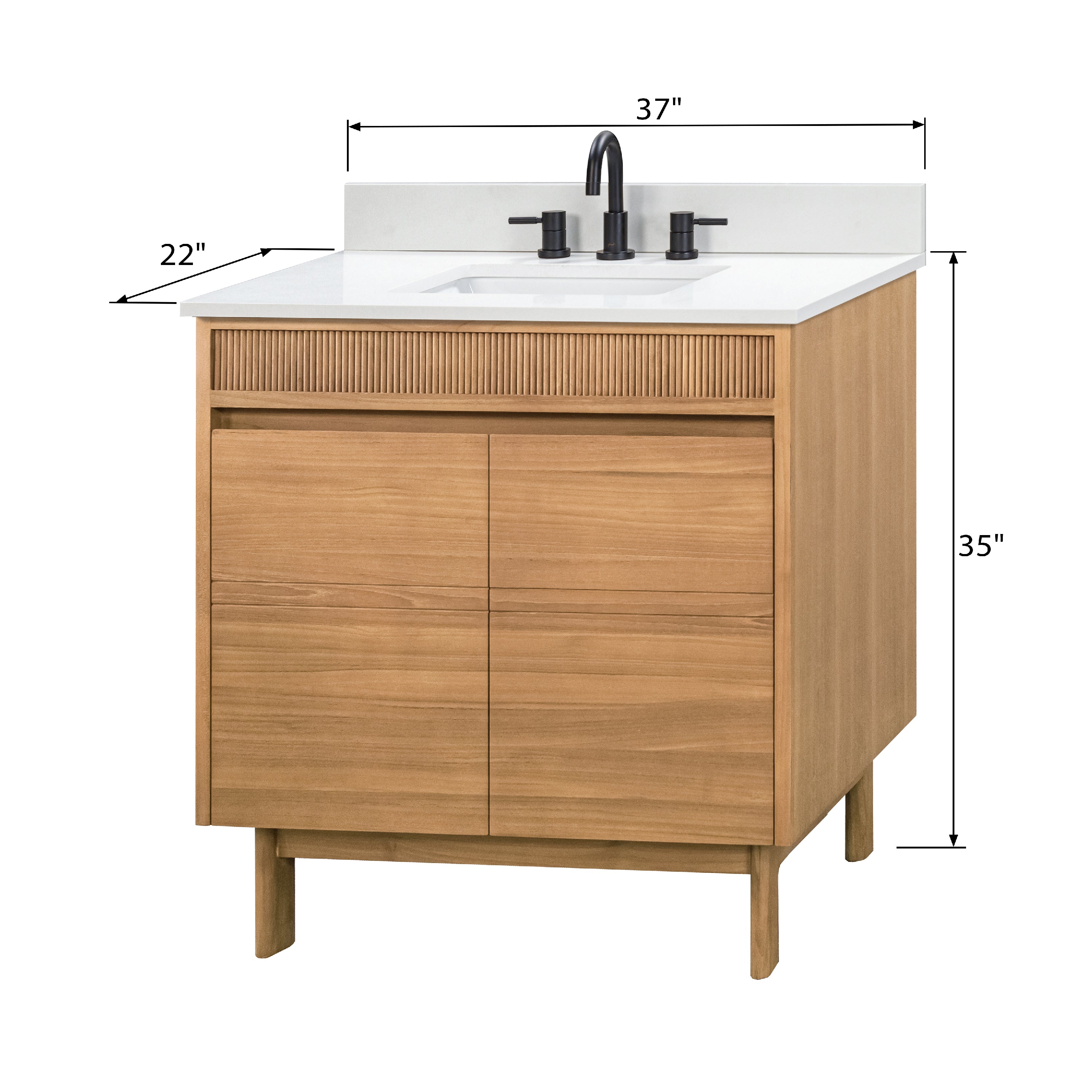 The Kayla Collection delivers the timeless beauty and durability of solid teak wood to a classic vanity design. Known for its rich grain and natural moisture resistance, teak ensures long-lasting performance in humid environments. A solid teak wood frame provides exceptional stability, while the minimalist flat-panel design keeps the look clean and modern. Subtle reeding details in the apron add texture and contrast, elevating the vanity’s refined aesthetic. Thoughtfully crafted for both function and style, Kayla brings sophistication to any bathroom.
