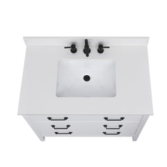 Durability, versatility, beauty. You get all three in this Everest White quartz top. Classic design, pure lines, and a range of sizes ensure that whatever the style of your cabinet this top can complete your vanity set with elegance. Sink is pre-installed for easy installation.
