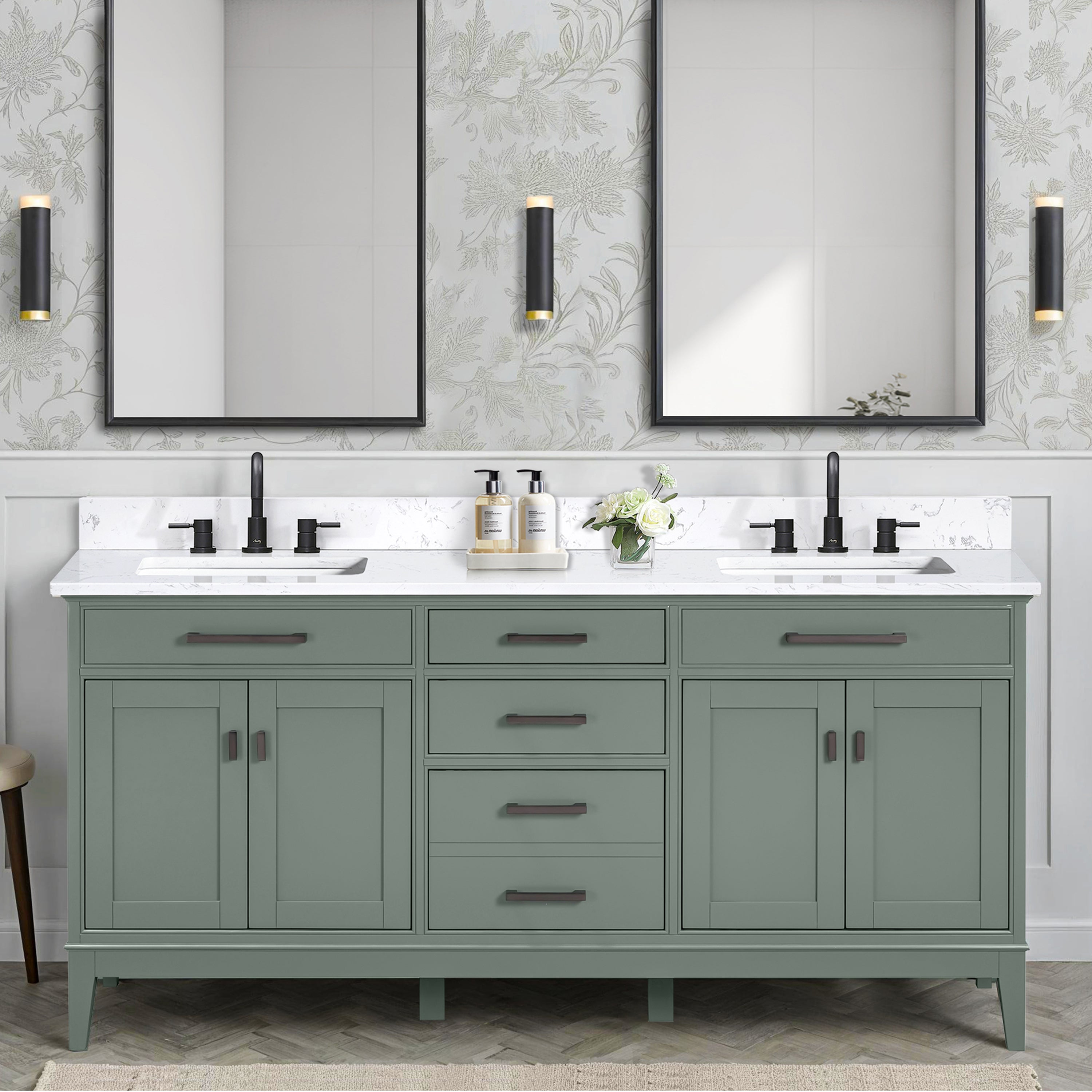 • Durable 1-in thick stone countertop with backsplash (sidesplash available separately)