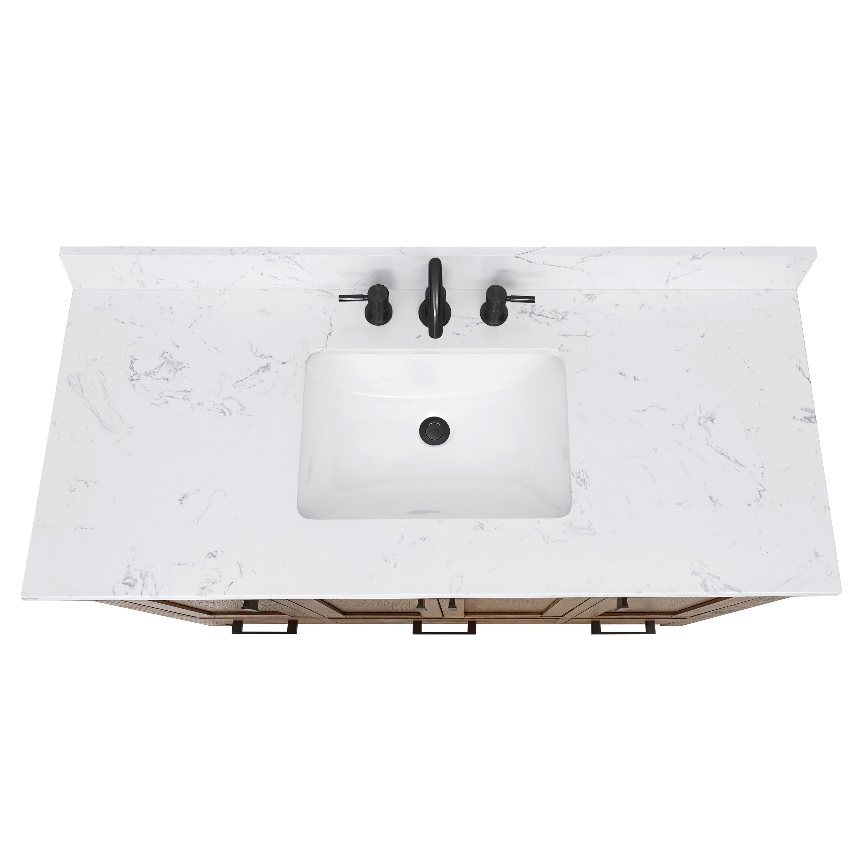 - Polished top is pre-drilled for 8-in widespread faucets (faucet not included)