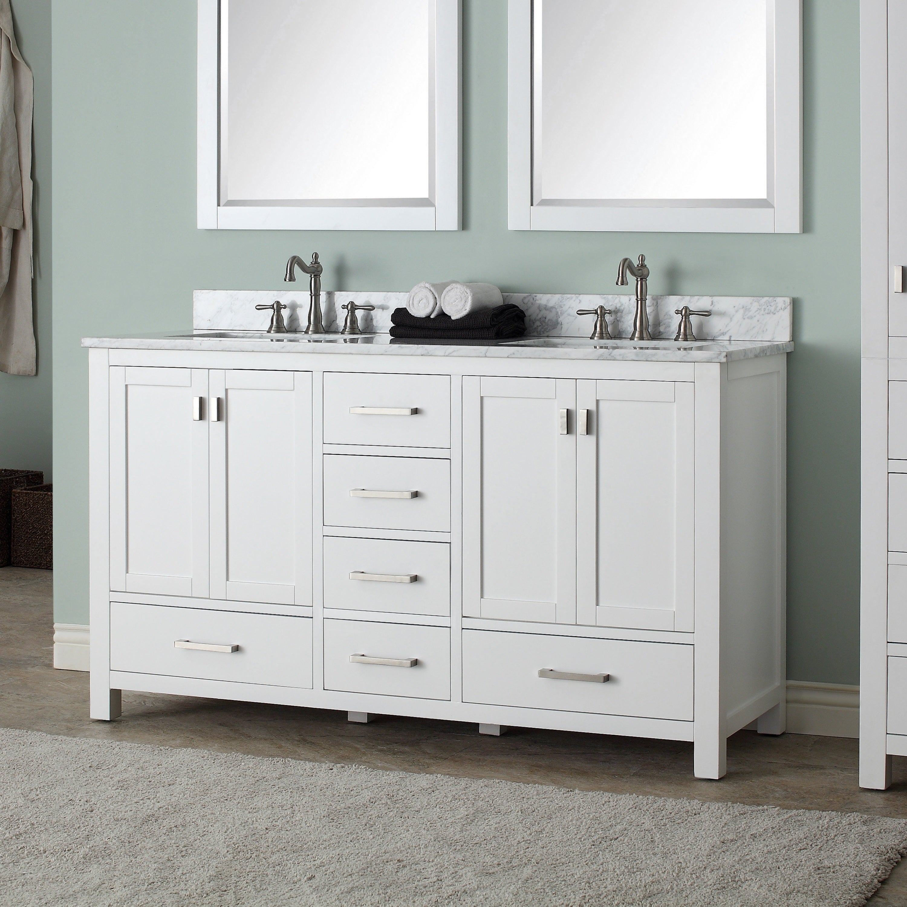 - Polished top is pre-drilled for 8-in widespread faucets (faucet not included)
