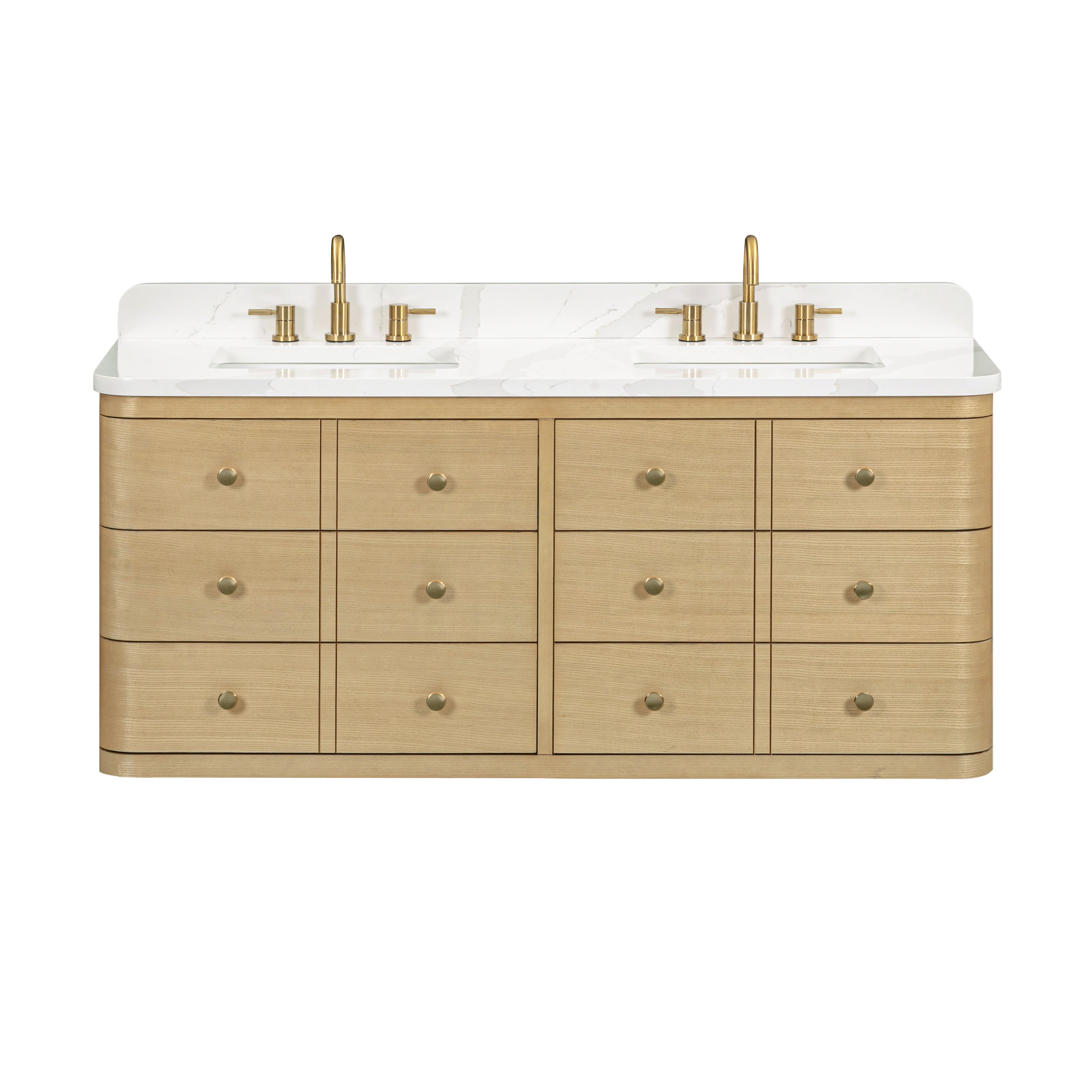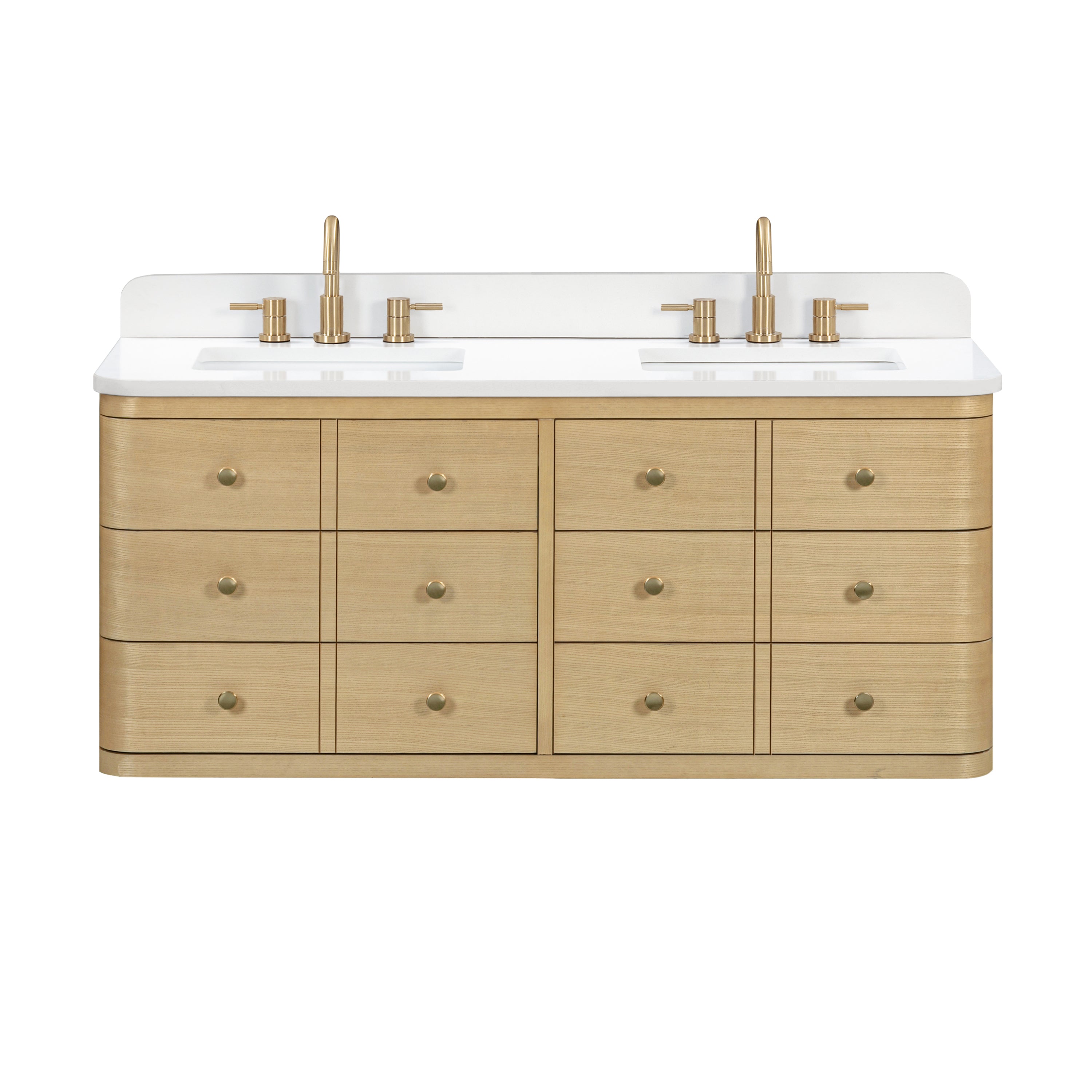 The Serena Collection displays a warm light oak finish with elegant gold hardware. Organic curves, inspired by midcentury design, blend seamlessly with an apothecary-style cabinet, offering ample storage and striking visual appeal. Integrated power strip with USB outlets included for convenience. Seamlessly balancing style and practicality, Serena promises to be the cornerstone of any bathroom space.