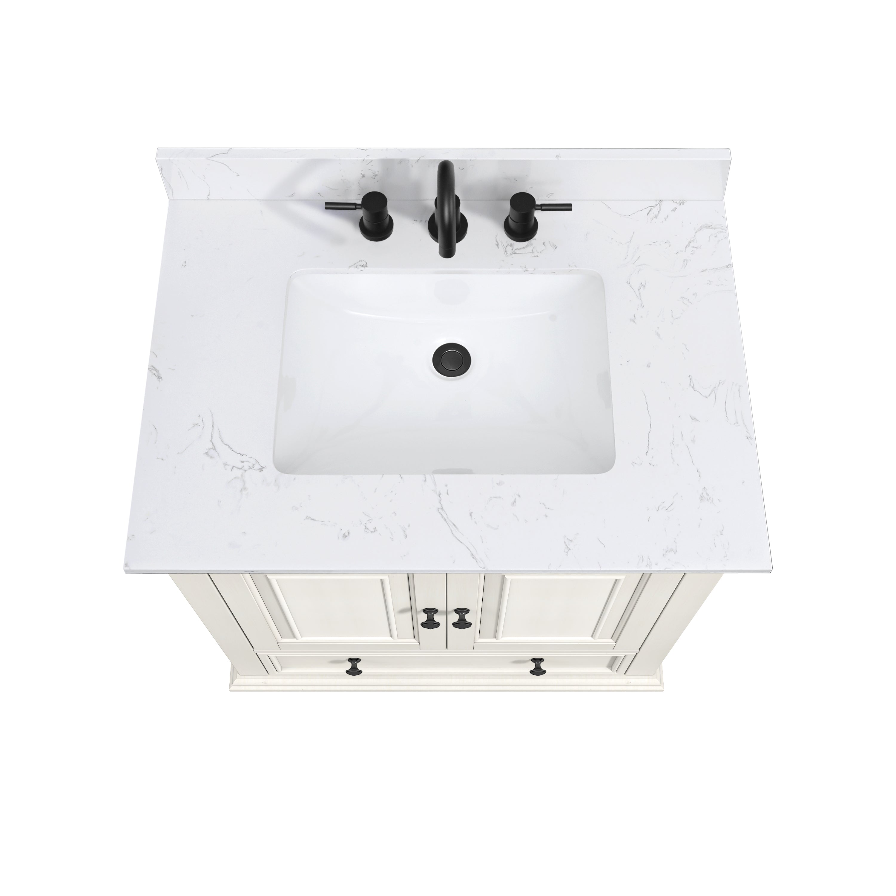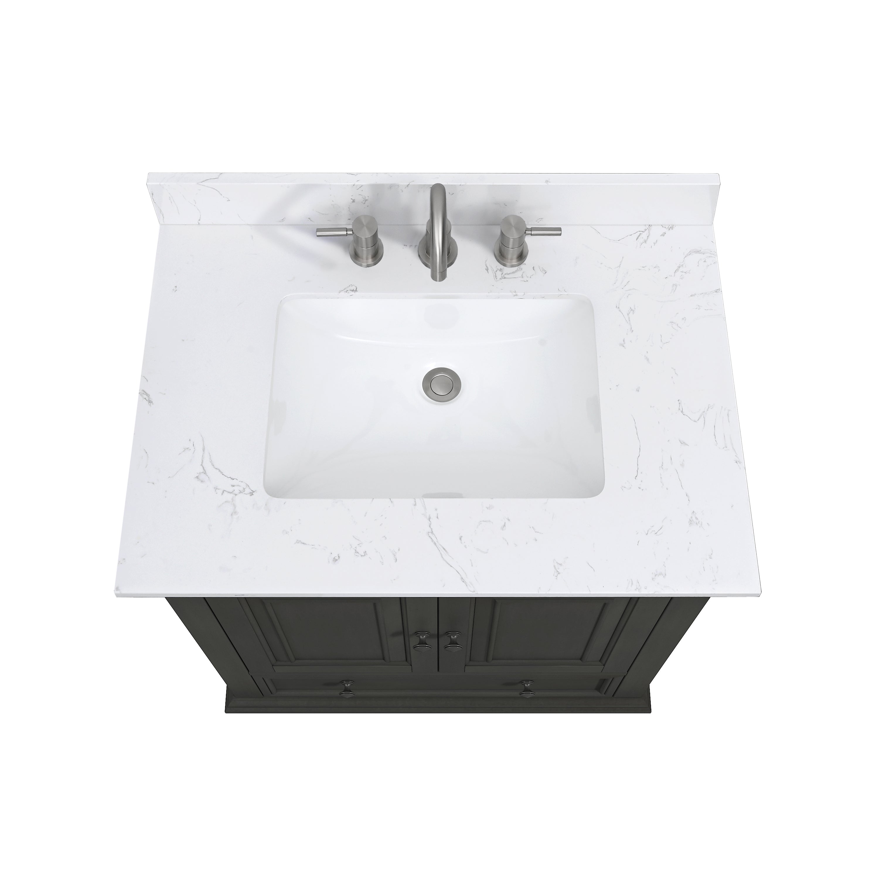 - Top is polished and pre-drilled for 8-in widespread faucets (faucet not included)