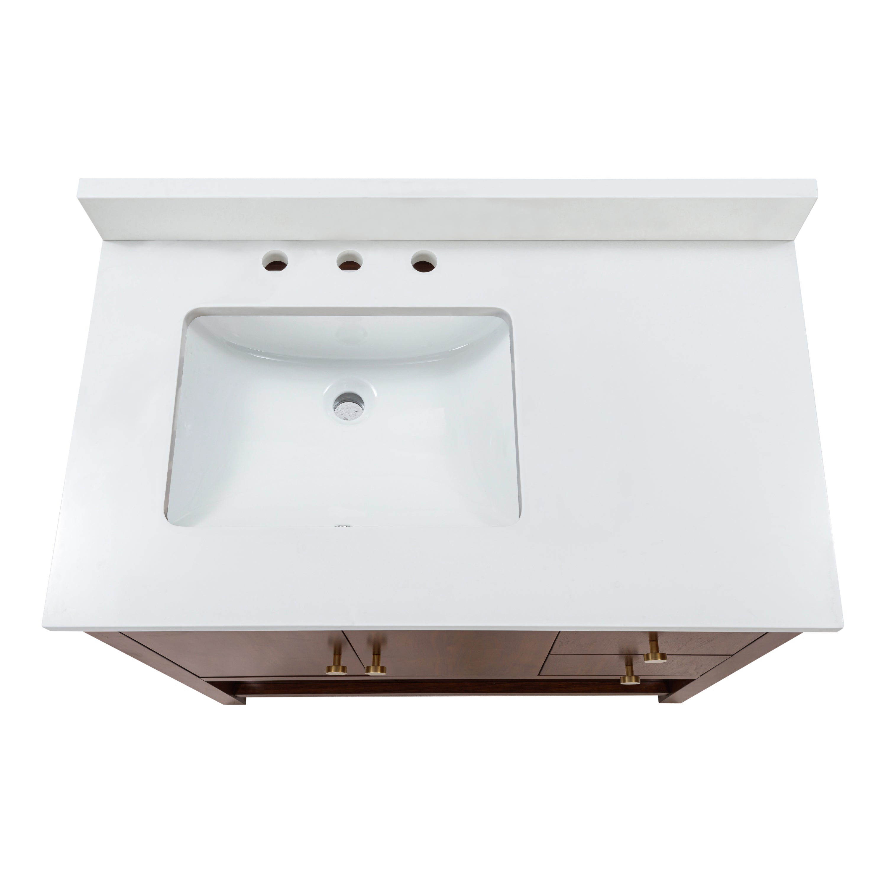 - Quartz top has a polished non-porous surface that is easy to clean and resists stains
